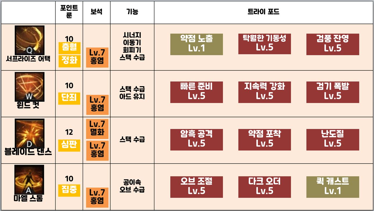 서프라이즈로 진입 후 윈드컷+블레이드 댄스로 빠르게 단심을 터트리는 조합입니다.