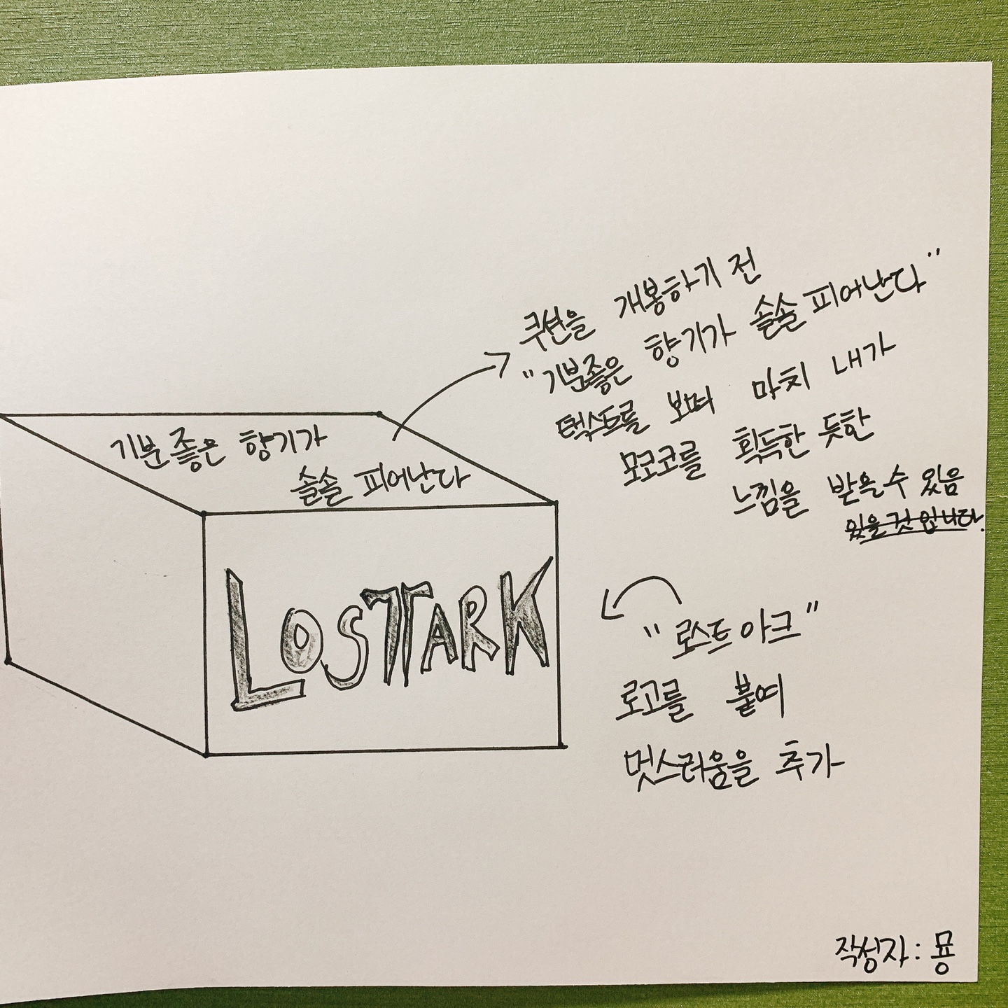 개봉하기 전에 "기분 좋은 향기가 솔솔 피어난다" 택스트를 상자 윗부분에 추가