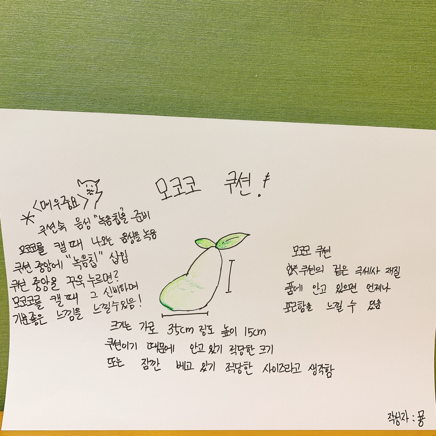 < 모코코 쿠션 예상 결과물 그림 >