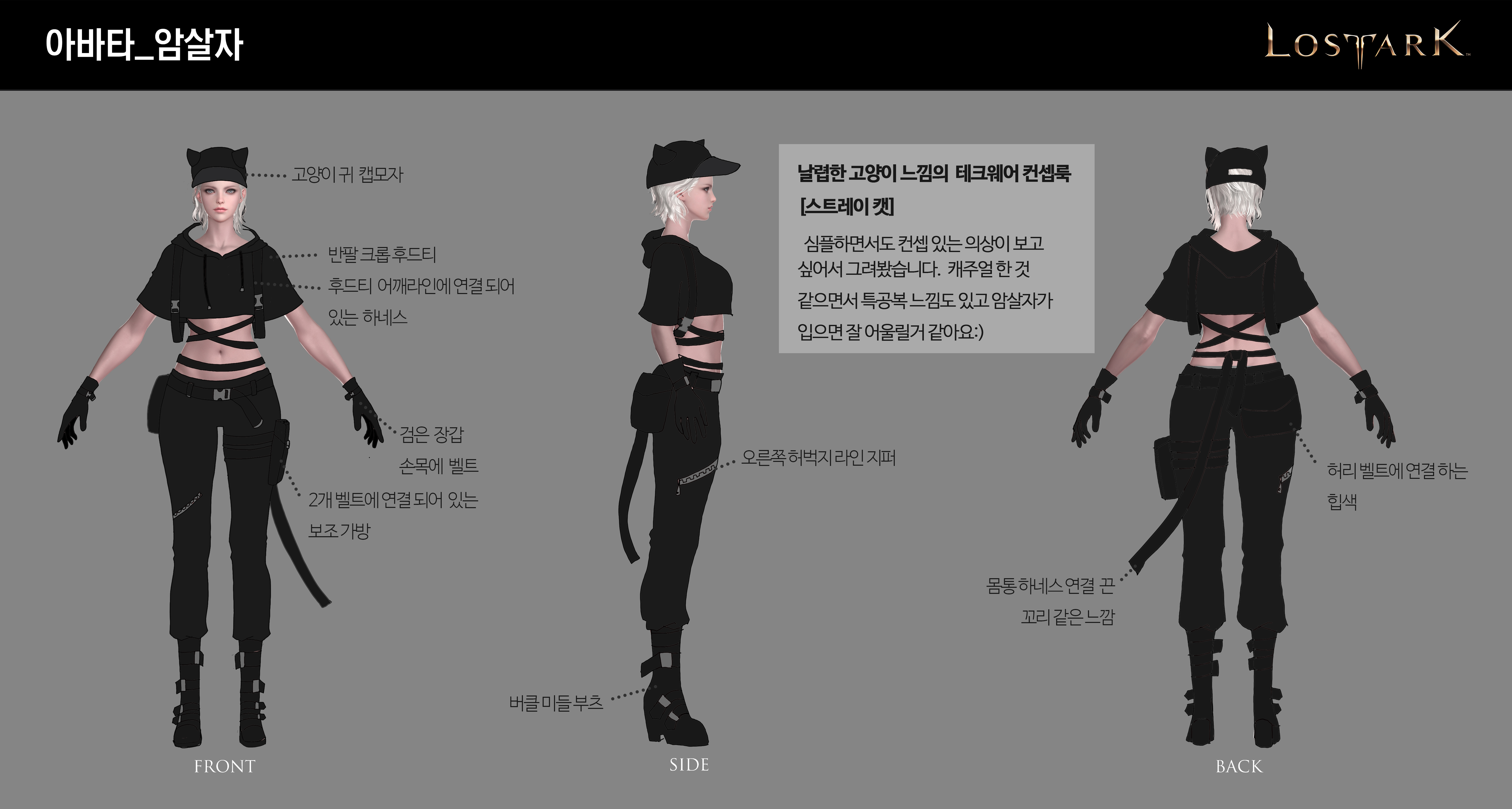 암살자로 테크웨어 느낌 나는 의상 보고 싶어서 그려봤어요