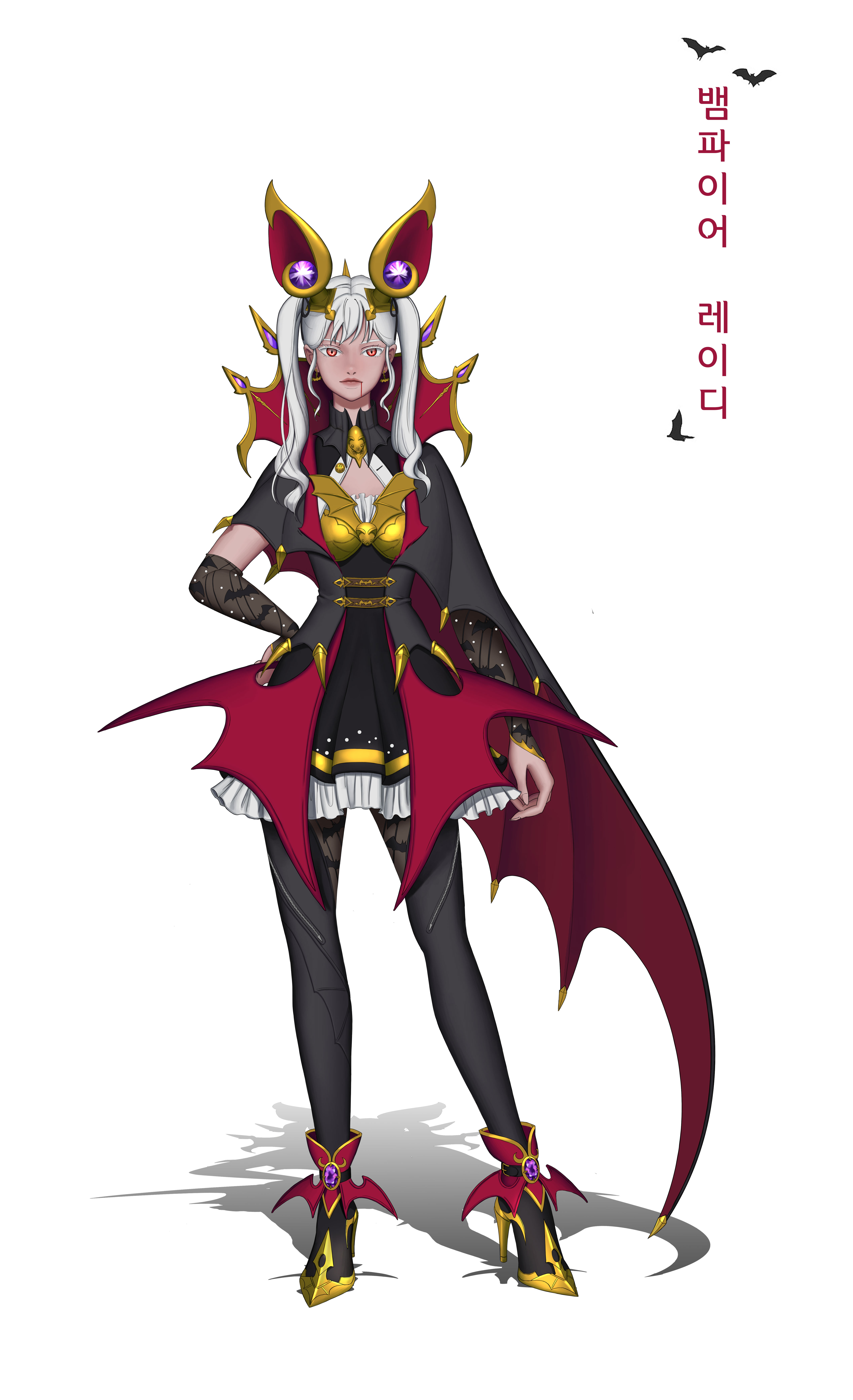 뱀파이어 레이디 룩은 박쥐를 모티브로 머리장식과 의상을 디자인하였습니다.