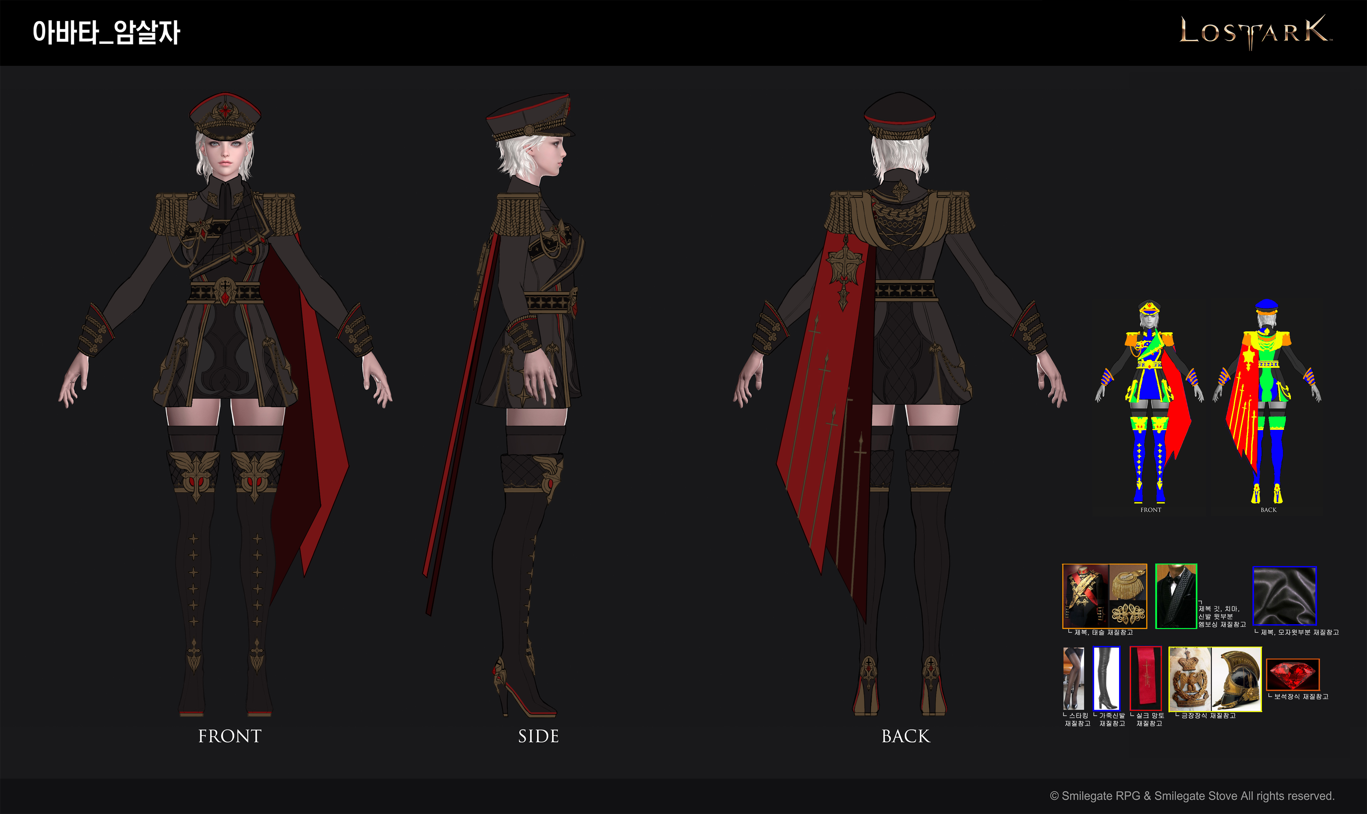 조직에 소속되어 있는 블레이드를 표현하기에 가장 적합한 의상은 제복이라고 생각하여 구상해보았습니다