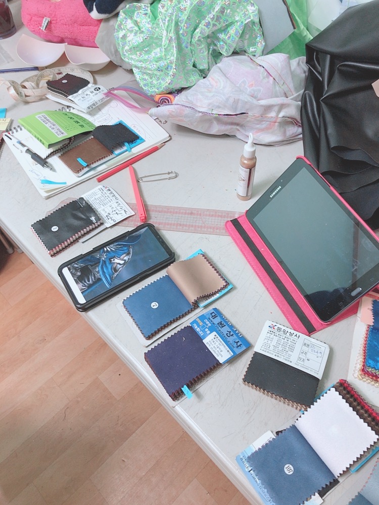 우선 맞춤제작을위해 제작자와함께 그 캐릭터 옷과 잘어울릴만한 옷감을 찾고~~