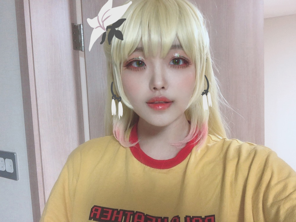 (아직 옷은 없어서 화장연습한다고 가발만쓰고 장식은 그림으로 떼운 야매..)
