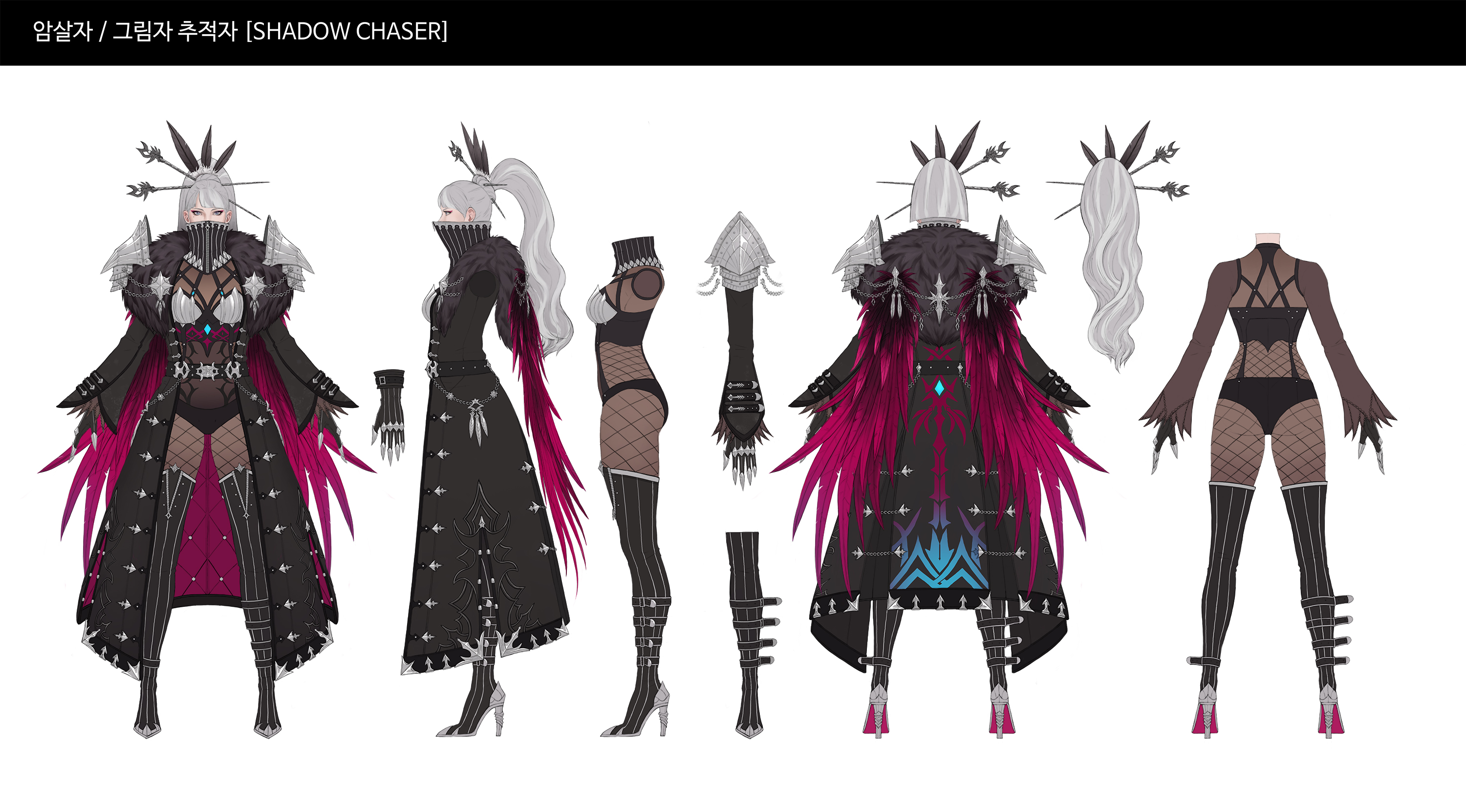 은빛 머리와 어두운 코트의 조합은 독수리를 연상케하며 메인 키워드였던 그림자와도 맞물린다고 생각했고,