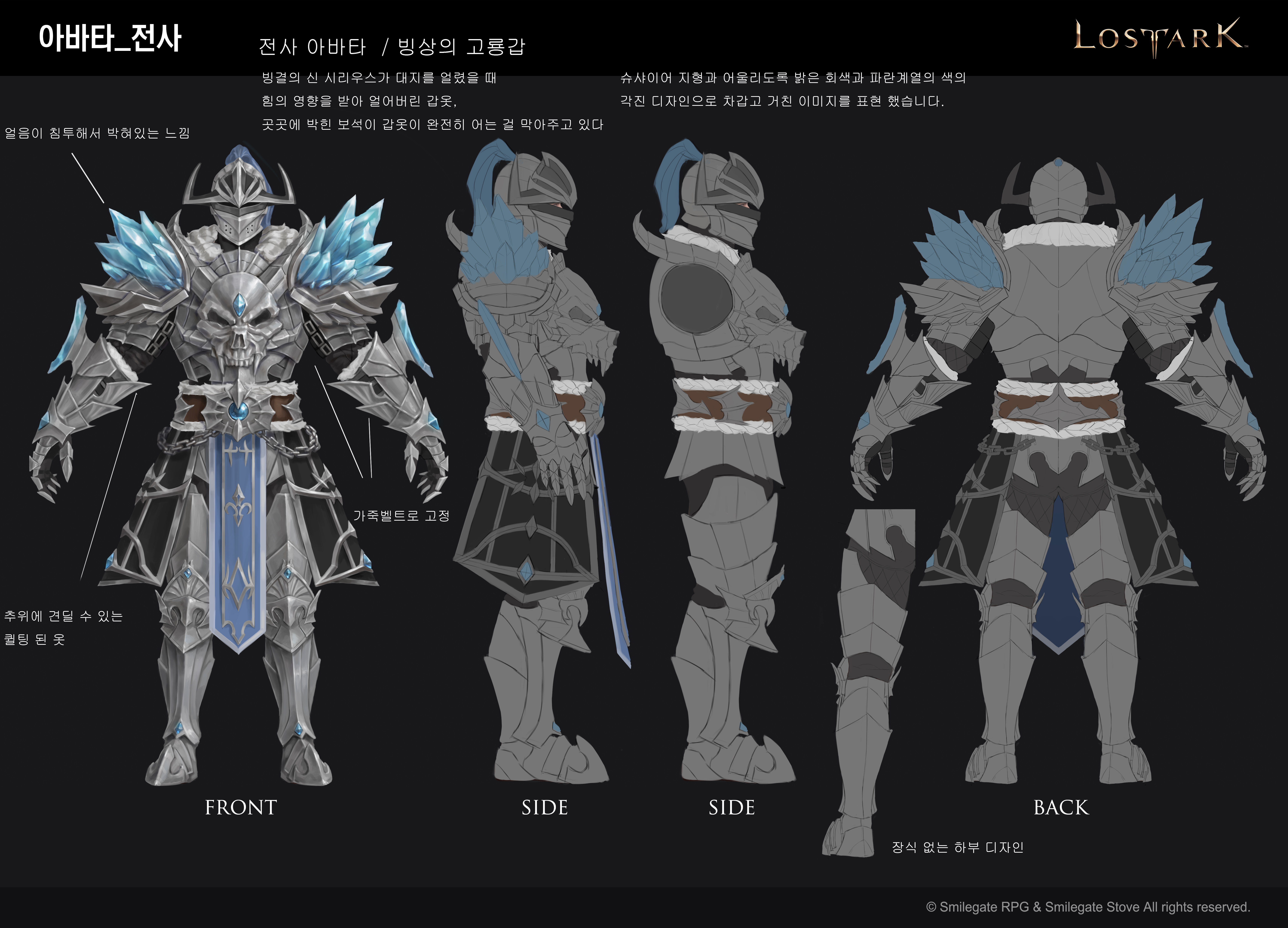 슈샤이어의 차갑고 황폐한 이미지를 생각하며 전체적으로 차갑고 거친 느낌으로 디자인 해봤습니다.