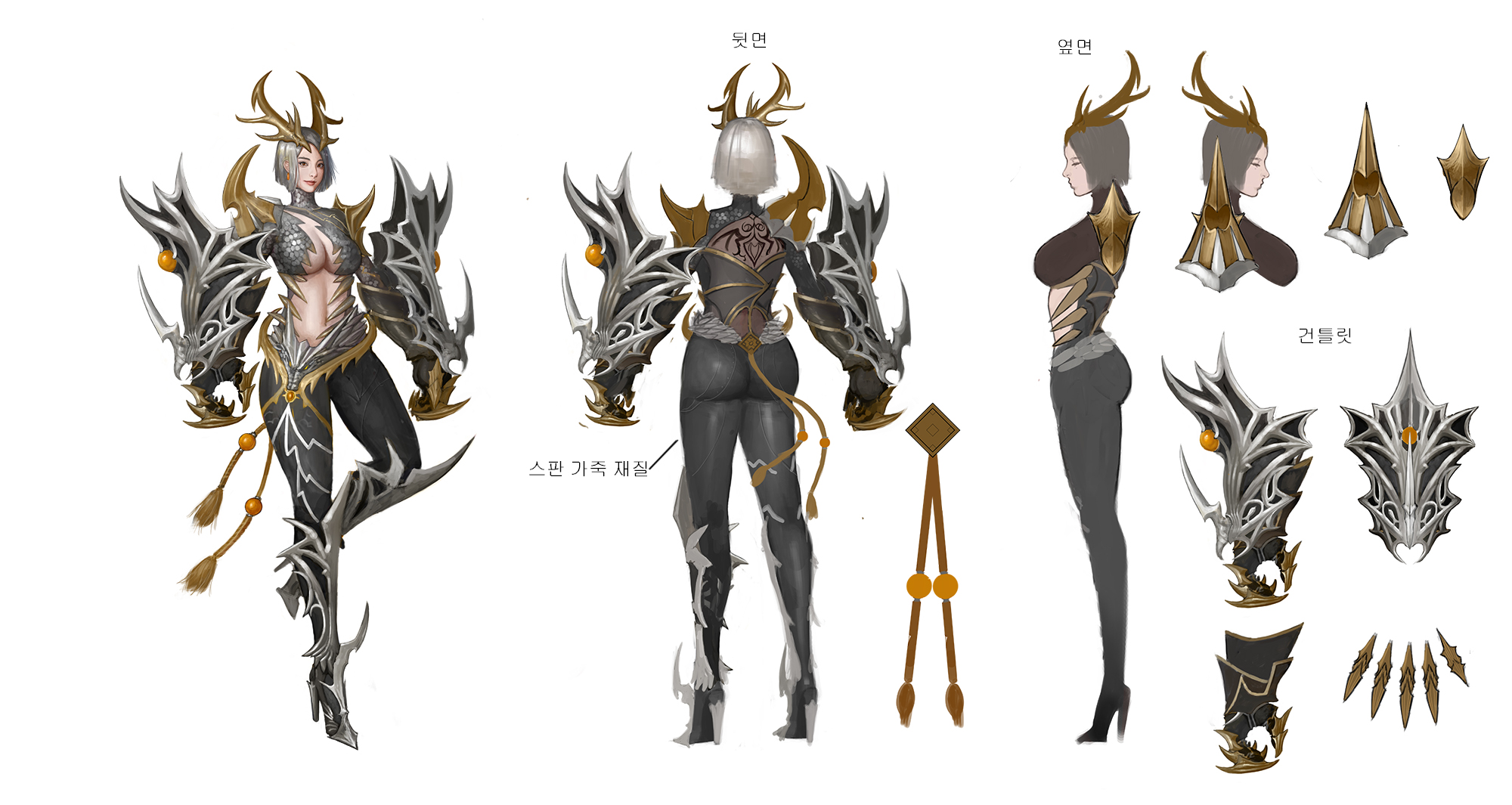 위협적이고 치명적인 이미지를 연상시키기 위해 건틀릿을 크고 날카롭게 디자인 했습니다.