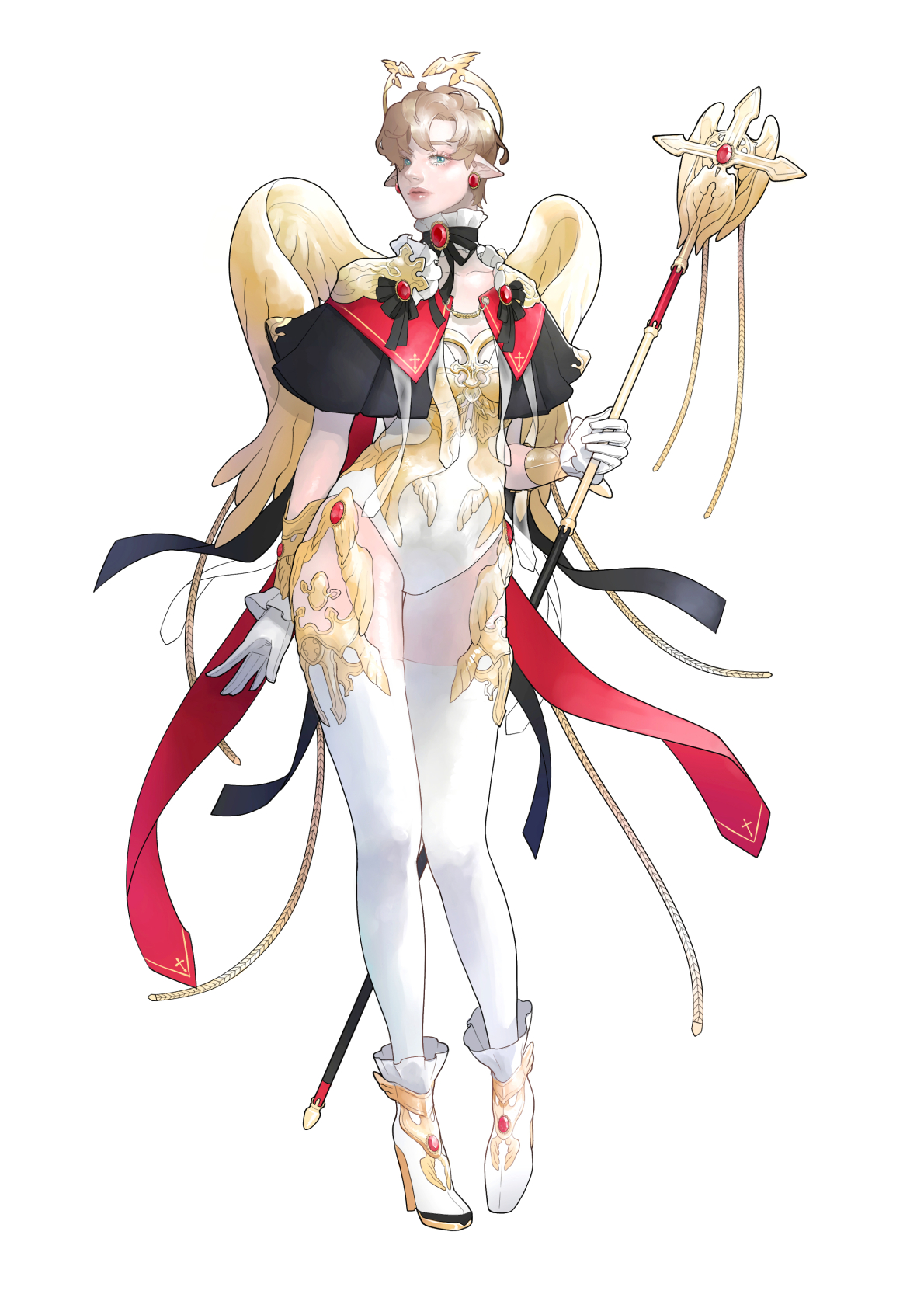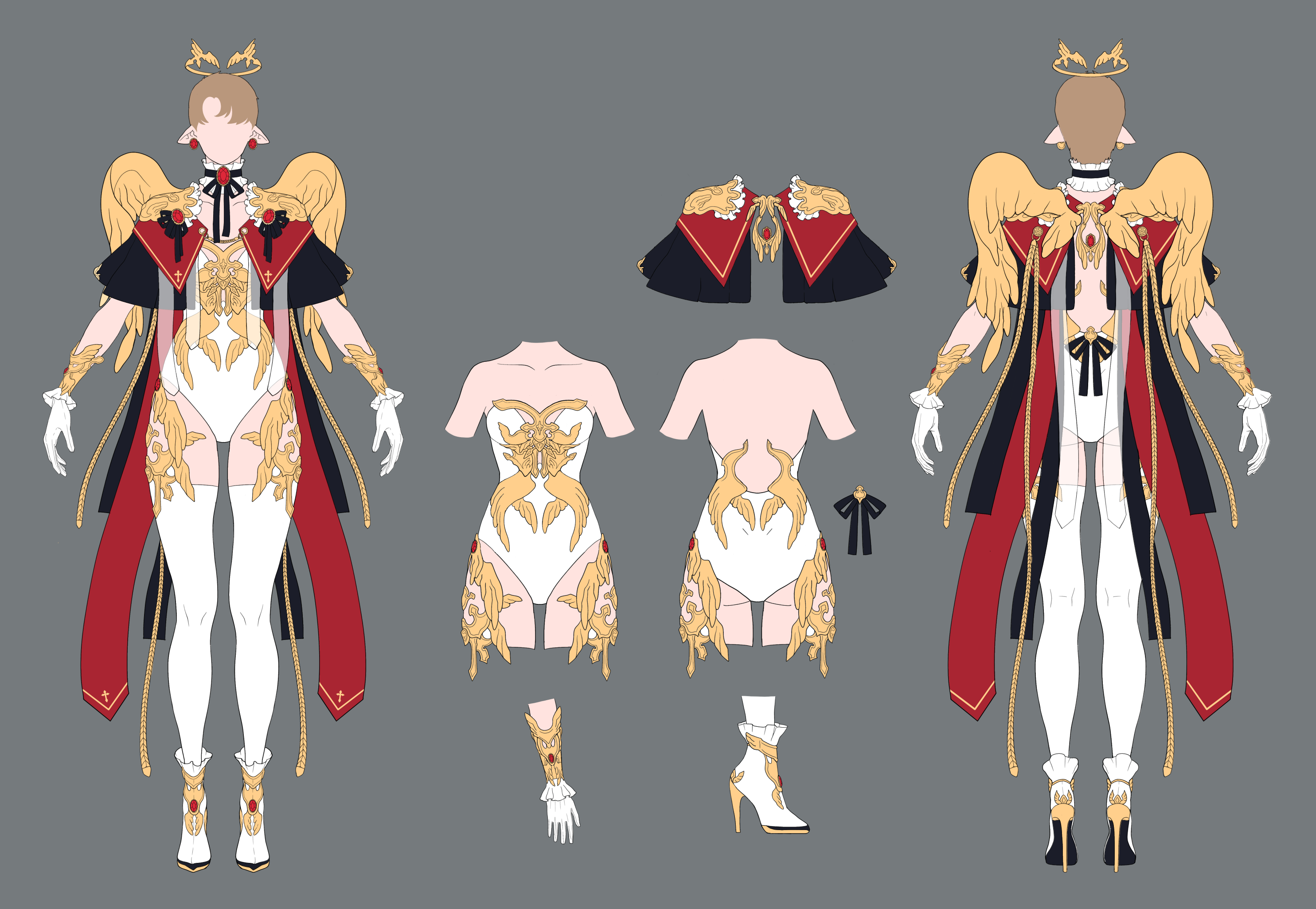날개 모양 장식은 펄럭이거나 휘날리는 것이 아니라 고정되어있는 금속 장식입니다. 자칫 유치해질 수 있는 천사라는 이미지를 최대한 세련되게 처리해보려고 노력했습니다. 머리 위의 장식은 천사 링 답게 머리로부터 약간 떠 있는 모양입니다.