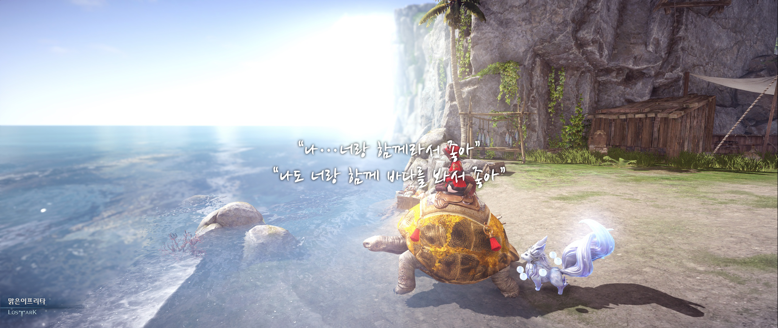 제목 - 소녀와 거북, 바다를 보다.