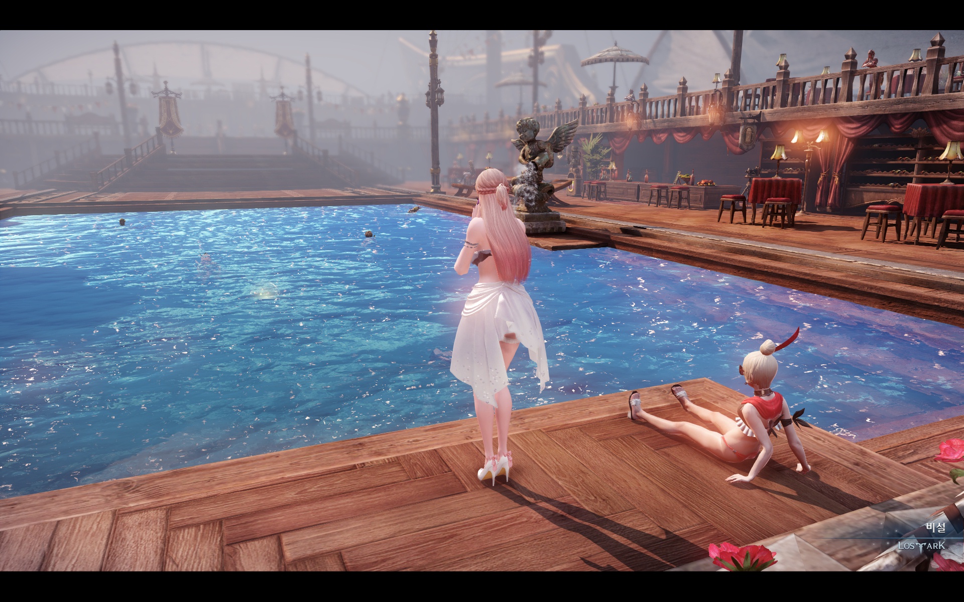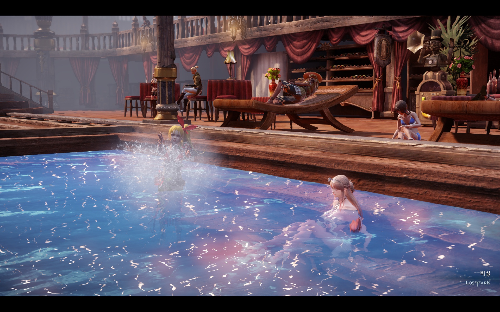 레이드에 지쳐서 휴가로 페이토 수영장에 오게되어 기쁜 모습... (감격)