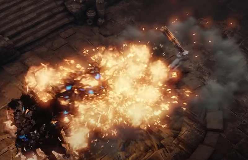 마치 바닥이 터지는 듯한 폭발 이펙트에