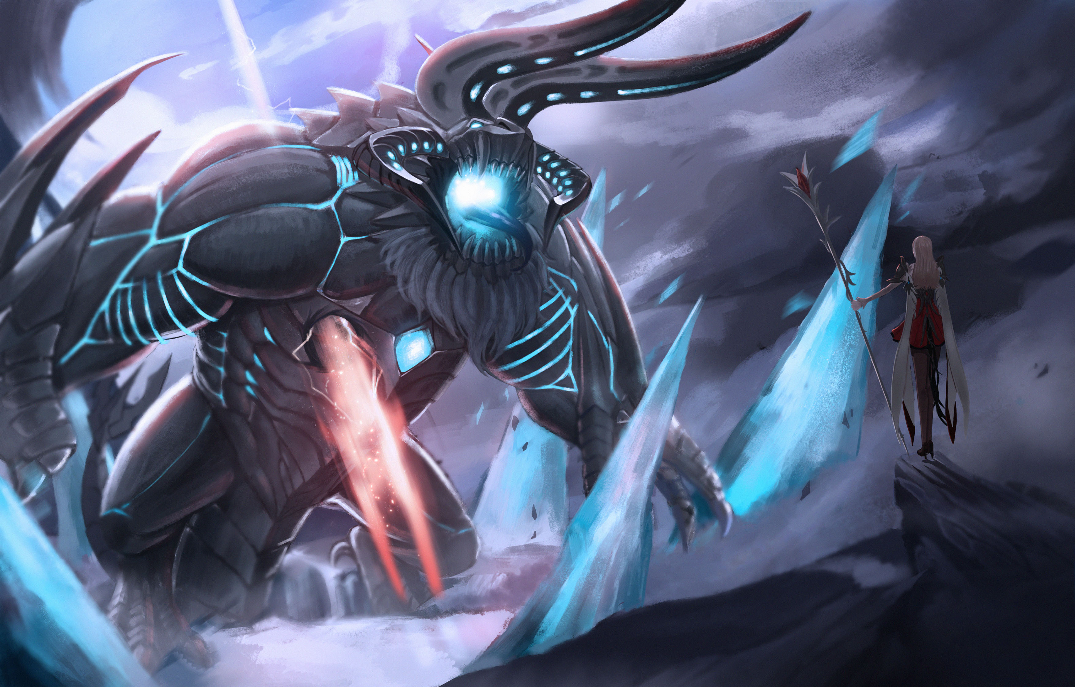 빙결의 레기오로스가 서머너의 고대의창을 맞는 모습을 그려보았습니다.