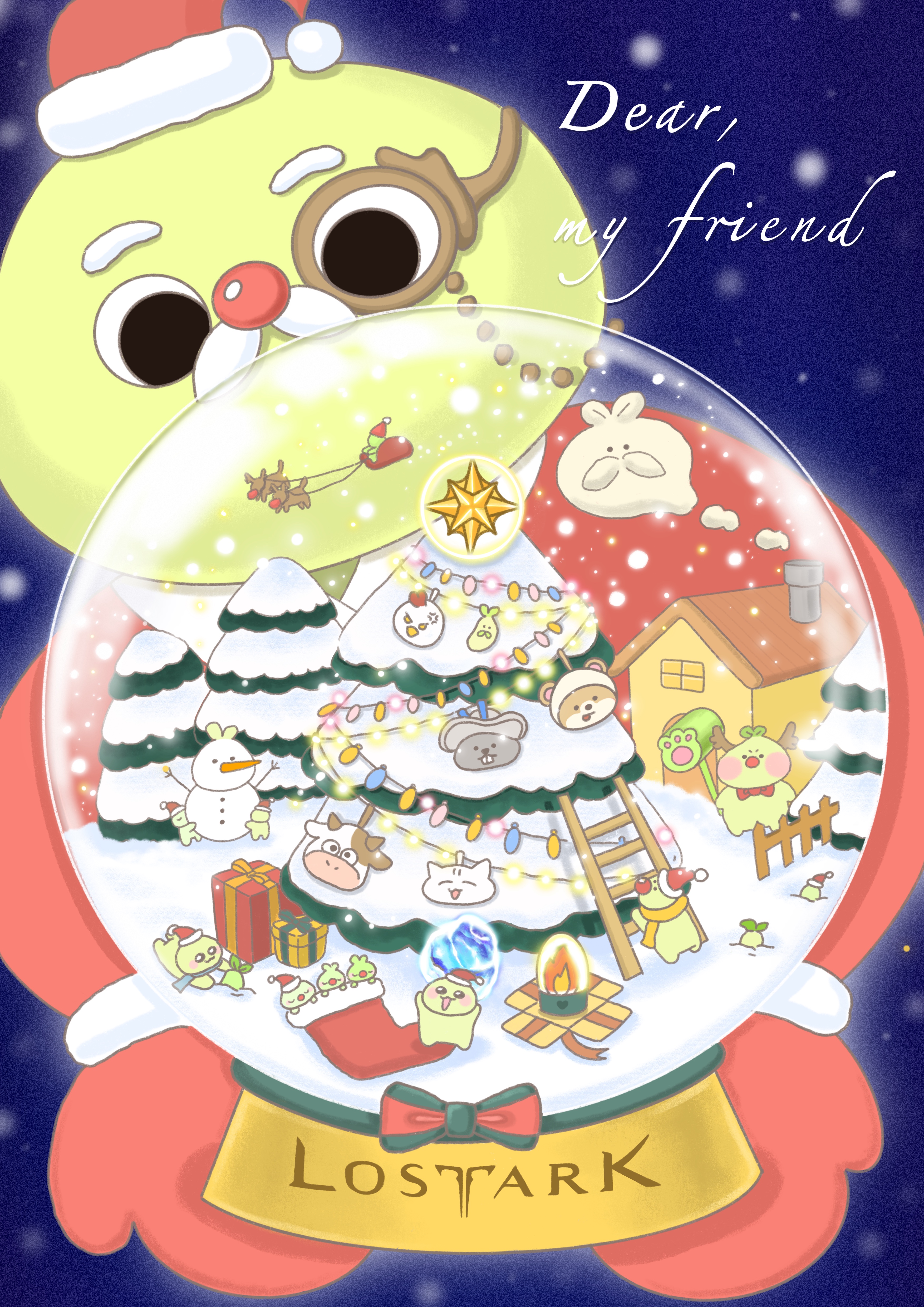 로아온 기념으로 산타 이고바바가 선물로 주는 모코코 스노우볼을 그려보았습니다 :)