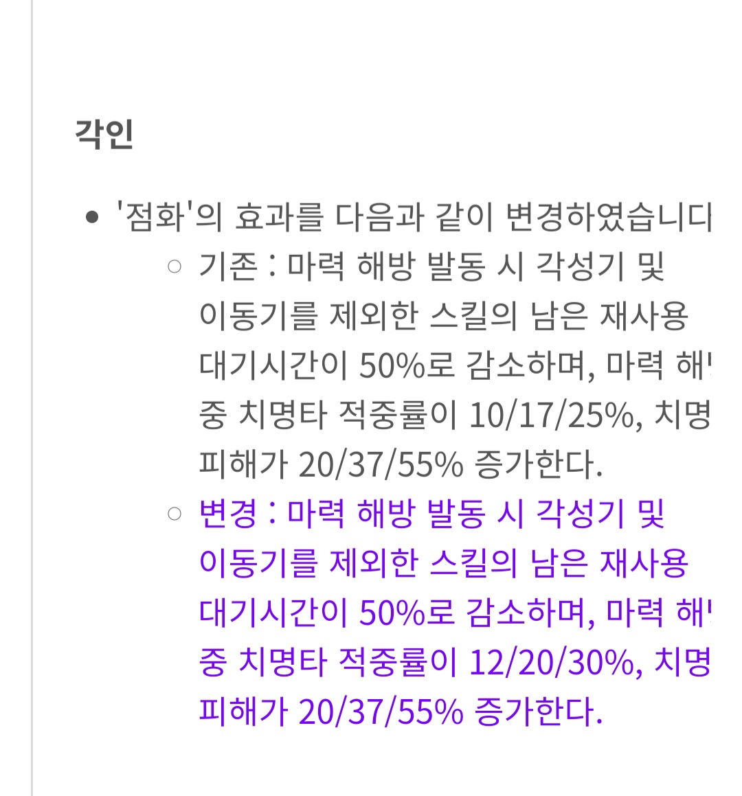마력해방시 각성기에 점화 효과가 안붙는건가요?