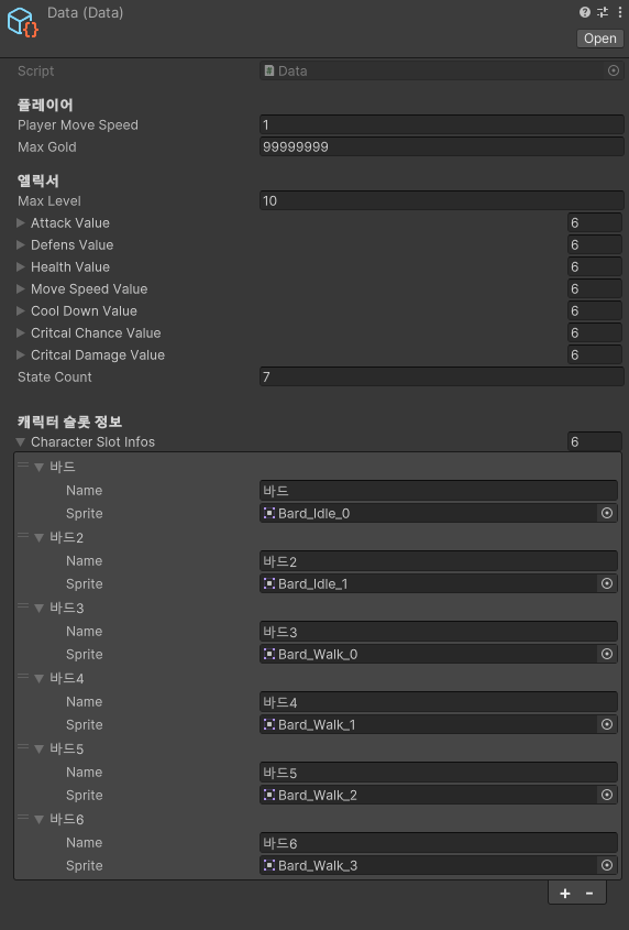 위에 처럼 이름이랑 넣은 기본 이미지가 적용되서 캐릭터 슬롯이 만들어짐