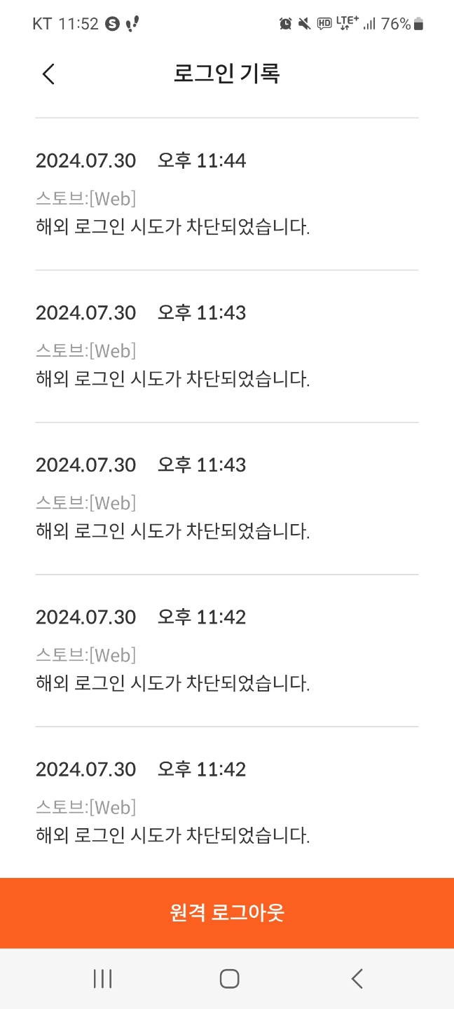 제목 그대로 아까 30일 오후 11시 42분부터 휴대폰 스토브 알림으로 해외 로그인 시도가 차단되었다는 알림이 현재까지 약 60차례 진행중입니다. 비번을 바꿔도 계속 지속되어 문의는 넣은 상태인데 이대로 냅둬도 되는걸까요? 이러다가 뚫리거나 혹은 계정이 잠길까봐 걱정입니다. ㅠㅠ