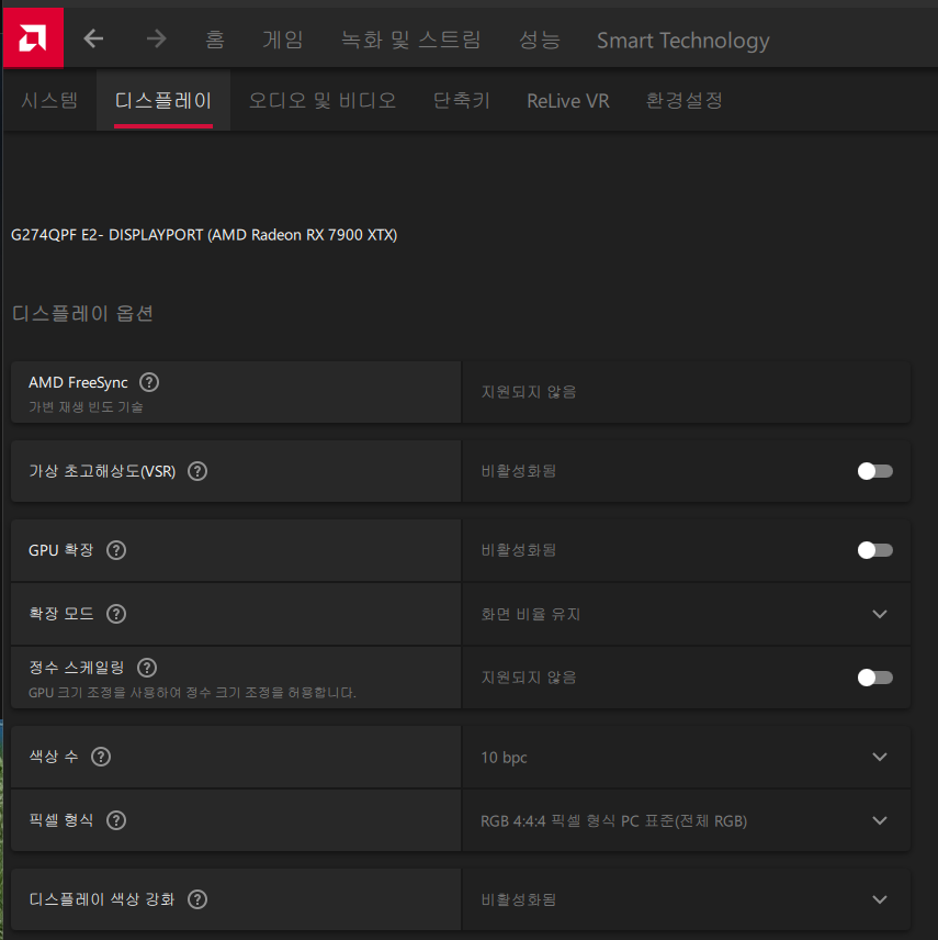 맨 밑에 스샷에 보면 암드 프리싱크란에 저기에