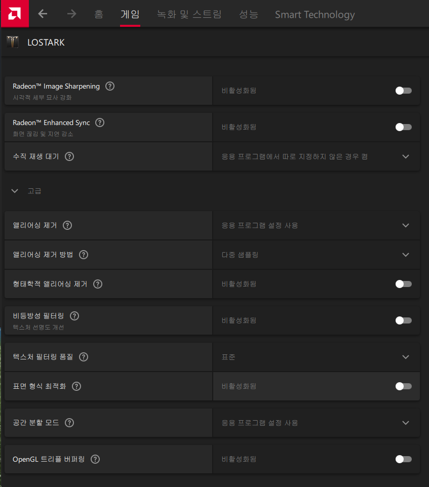 로아 라데온 설정법 공유함