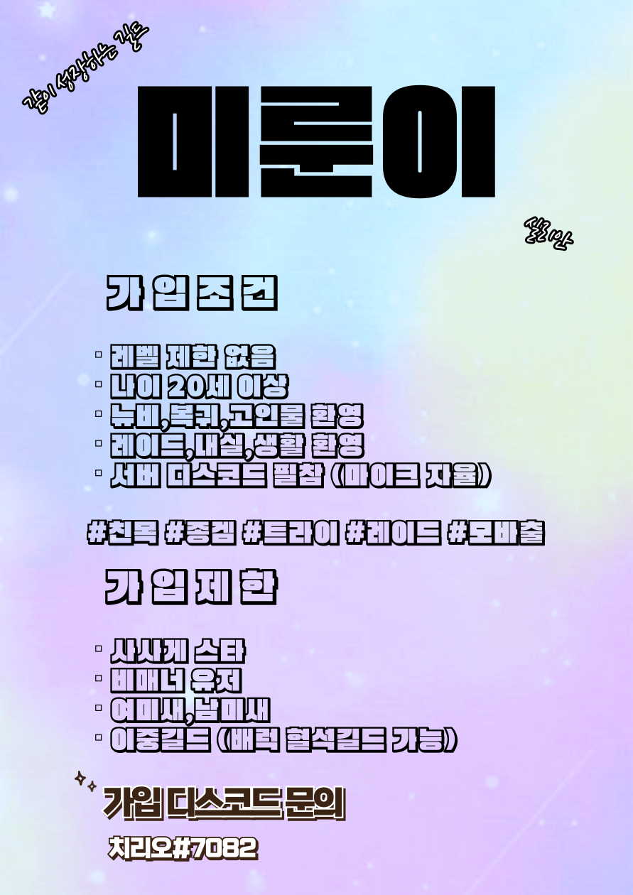 실리안 서버 같이성장하는 길드"미룬이"와 함께할 친구같은 길드원 구합니다!!
