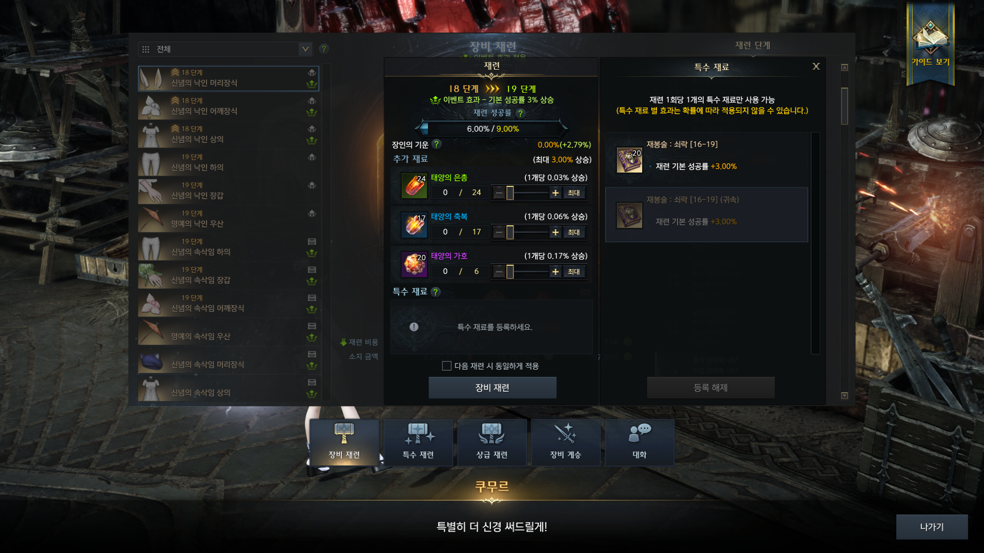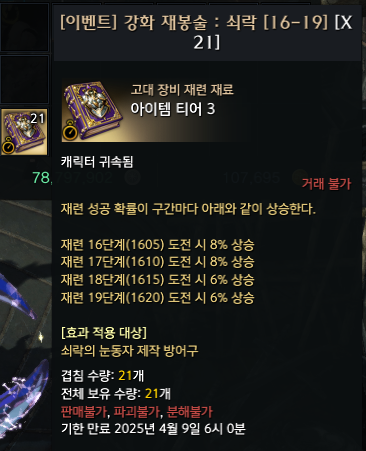분명히 이벤트 재봉책이 남아있는데 강화하려니 안보인다 어쩌냐