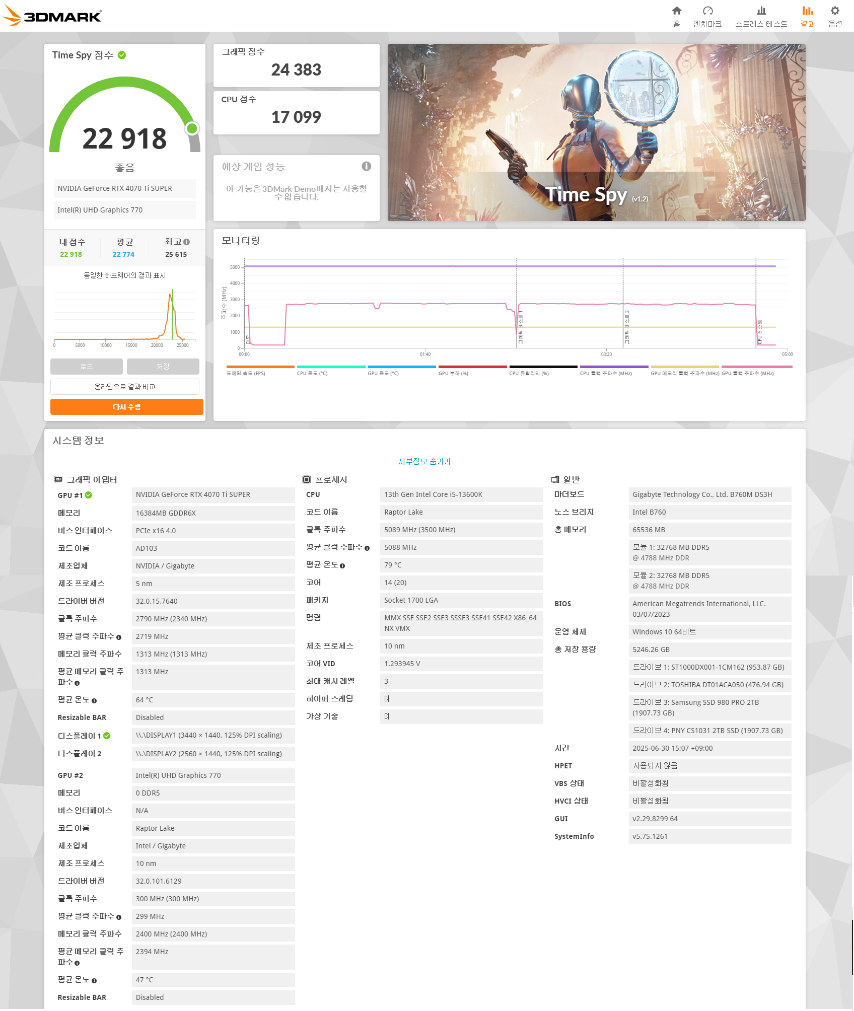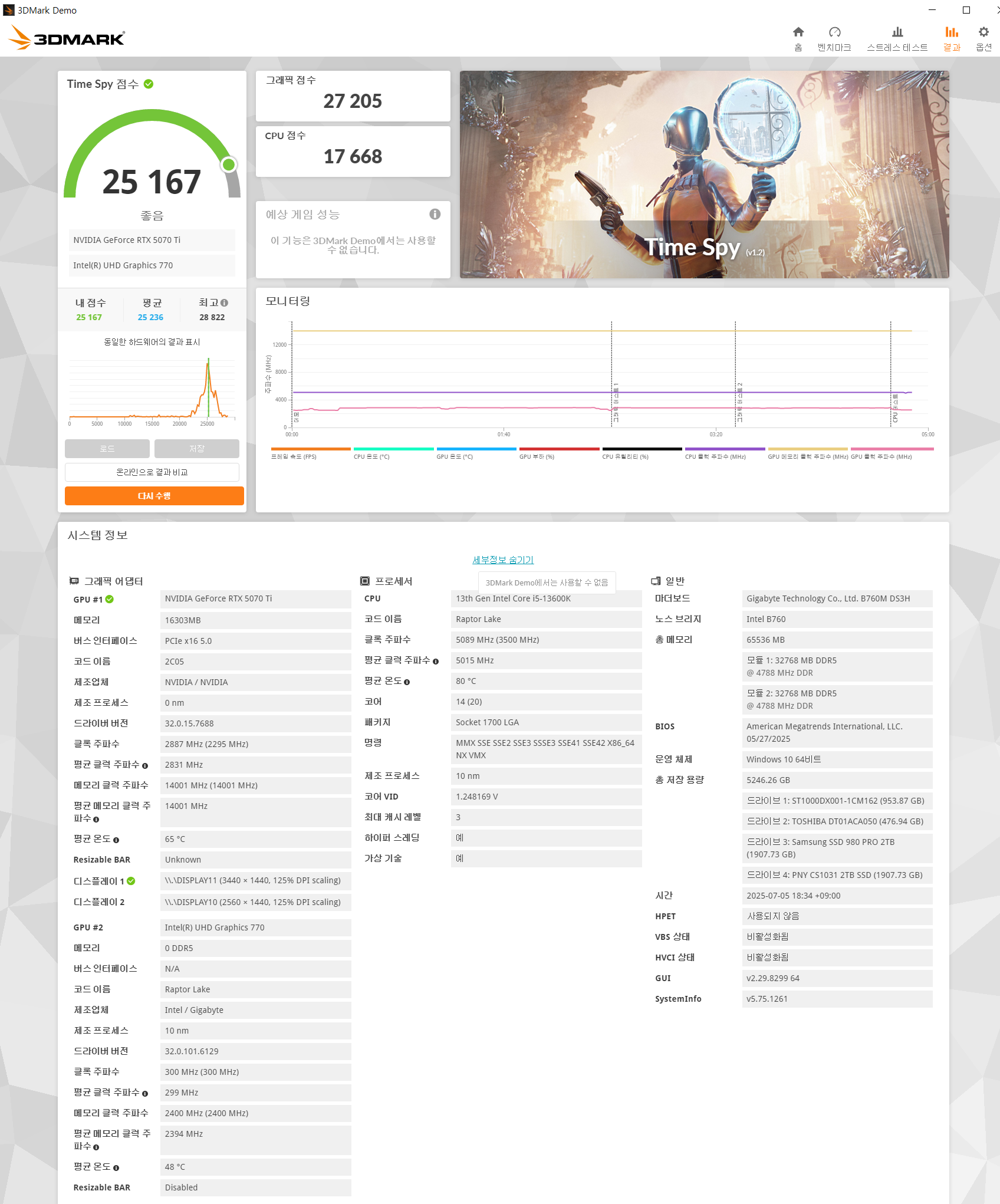 기존사용하던 4070ti super 1년정도쓰고 13만원 감가해서 당근에 팜 5070ti 벤투스가 26000점대인걸 감안하면 4070티슈 정말 괜찮은 제품이긴했다 모니터가 Wqhd에다가 다중모니터 인지라 사용율이 꽉찬느낌이라서 바꾼것이지 QHD 165hz 충분했다
