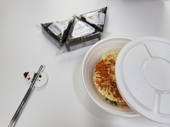 오늘 점심은 왕뚜껑에 삼각김밥이다.