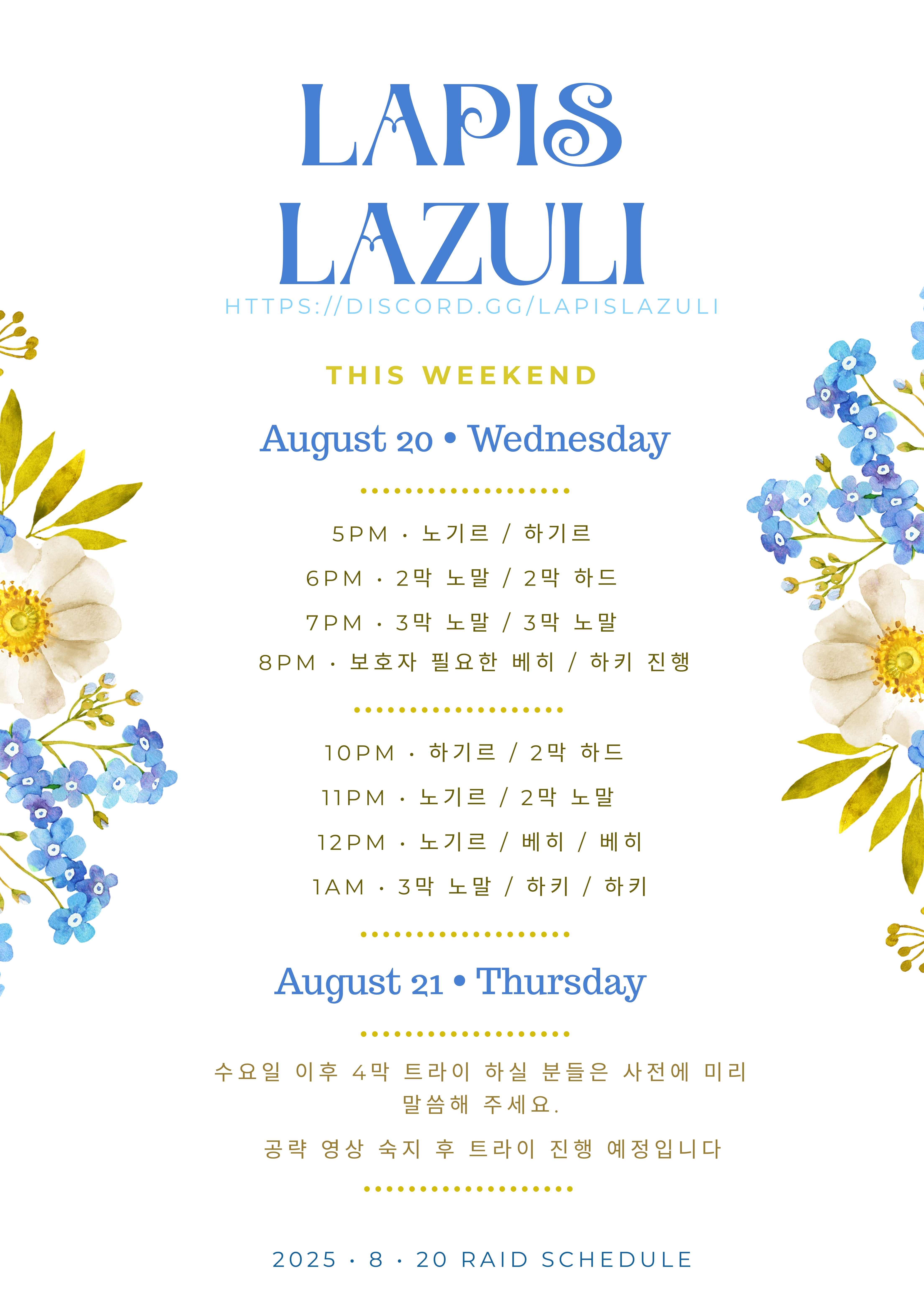 현재 진행중인 레이드 일정들 올려봅니다 ^^