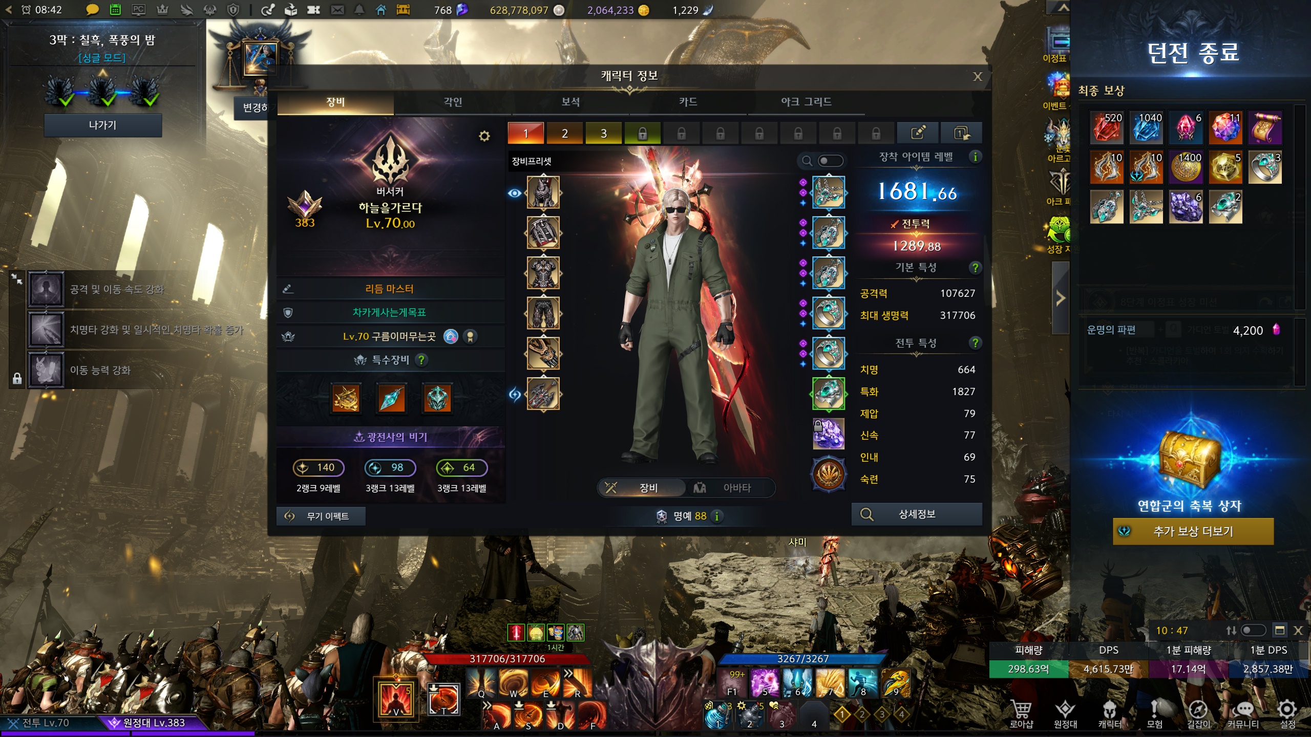 1681 버서커 투력 1289 카제로스 3막 싱글 정복