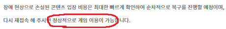 정상적으로 게임 이용이 안되요.