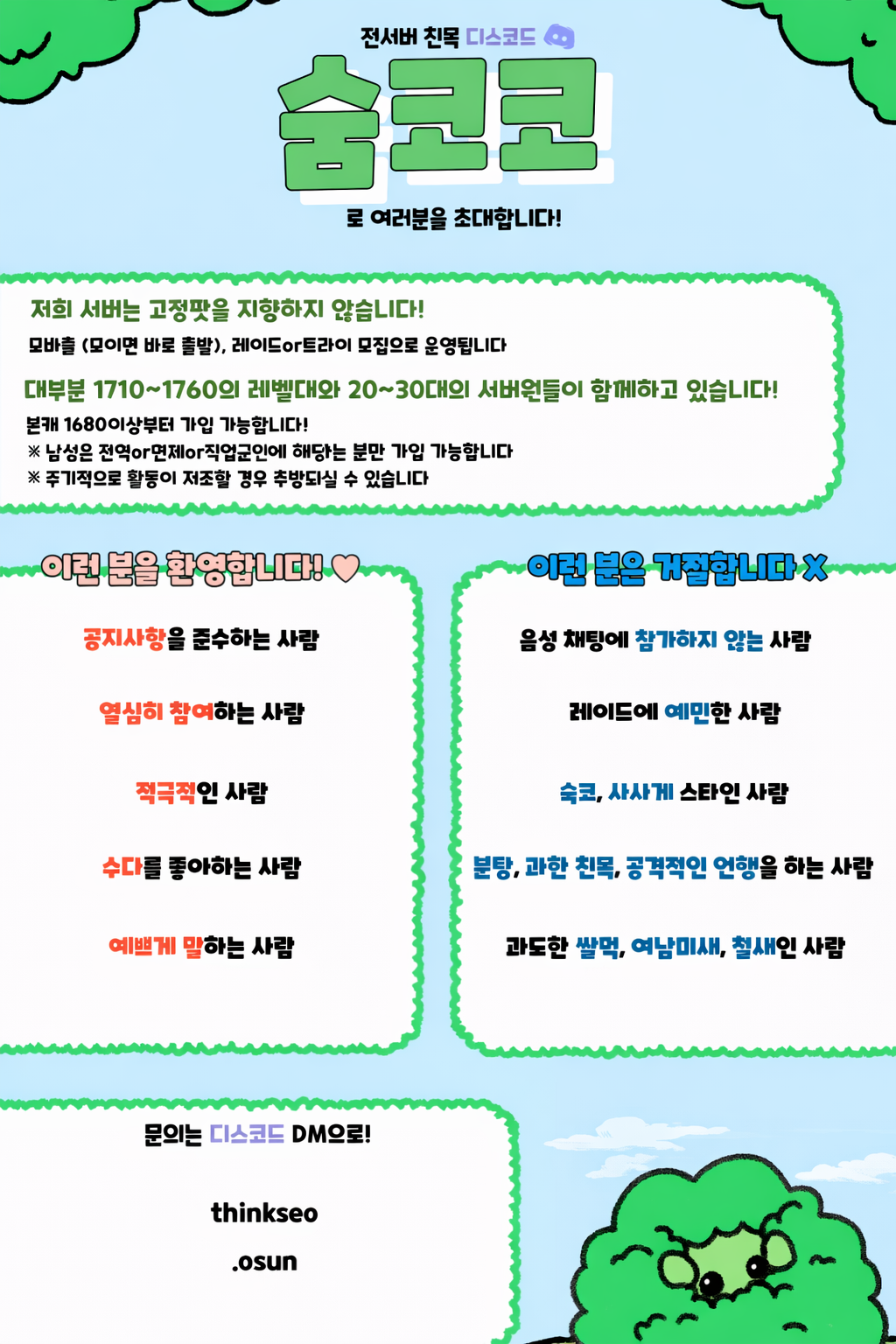 ✨[전섭] "숨코코" 친목 디스코드! 레이드/모바출/일숙/잡담✨ 새 글