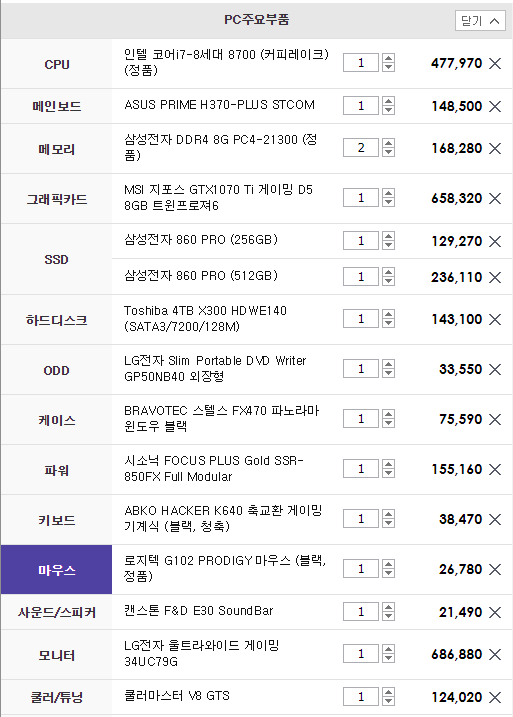 사양과 호환성에 중점을 둔 구성이니 가격은 각 개인마다 사이트 마다 약간의 차이는 다소 발생 할 수 있다는 점을 참고 하시면 좋을 것 같아요.
