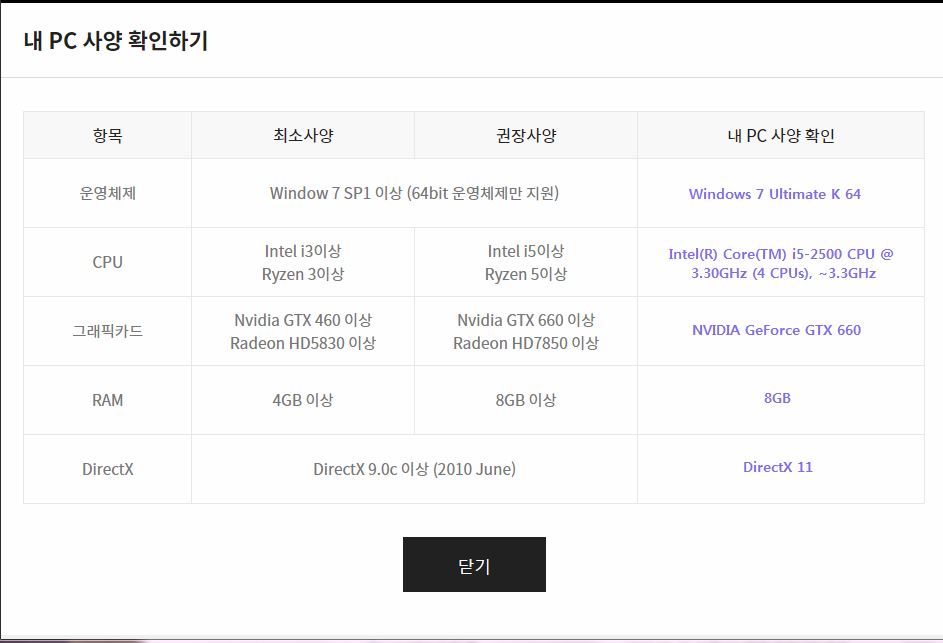 컴퓨터사양 windows 7 Uitimate K 이걸로 사용하고 있습니다
