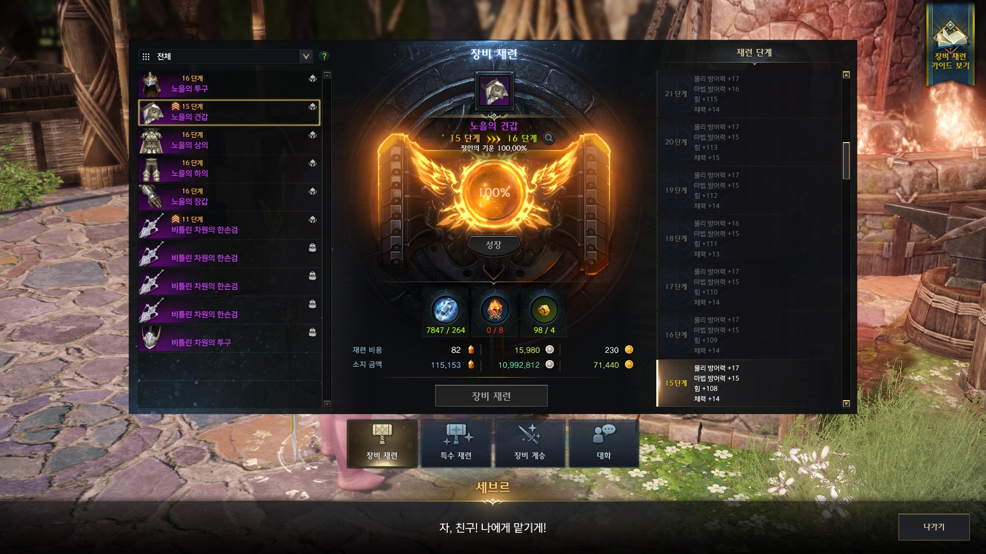 방어구만 16강재련 수호석이 남아돌아서 재련해보니 전부 90%~장기백
