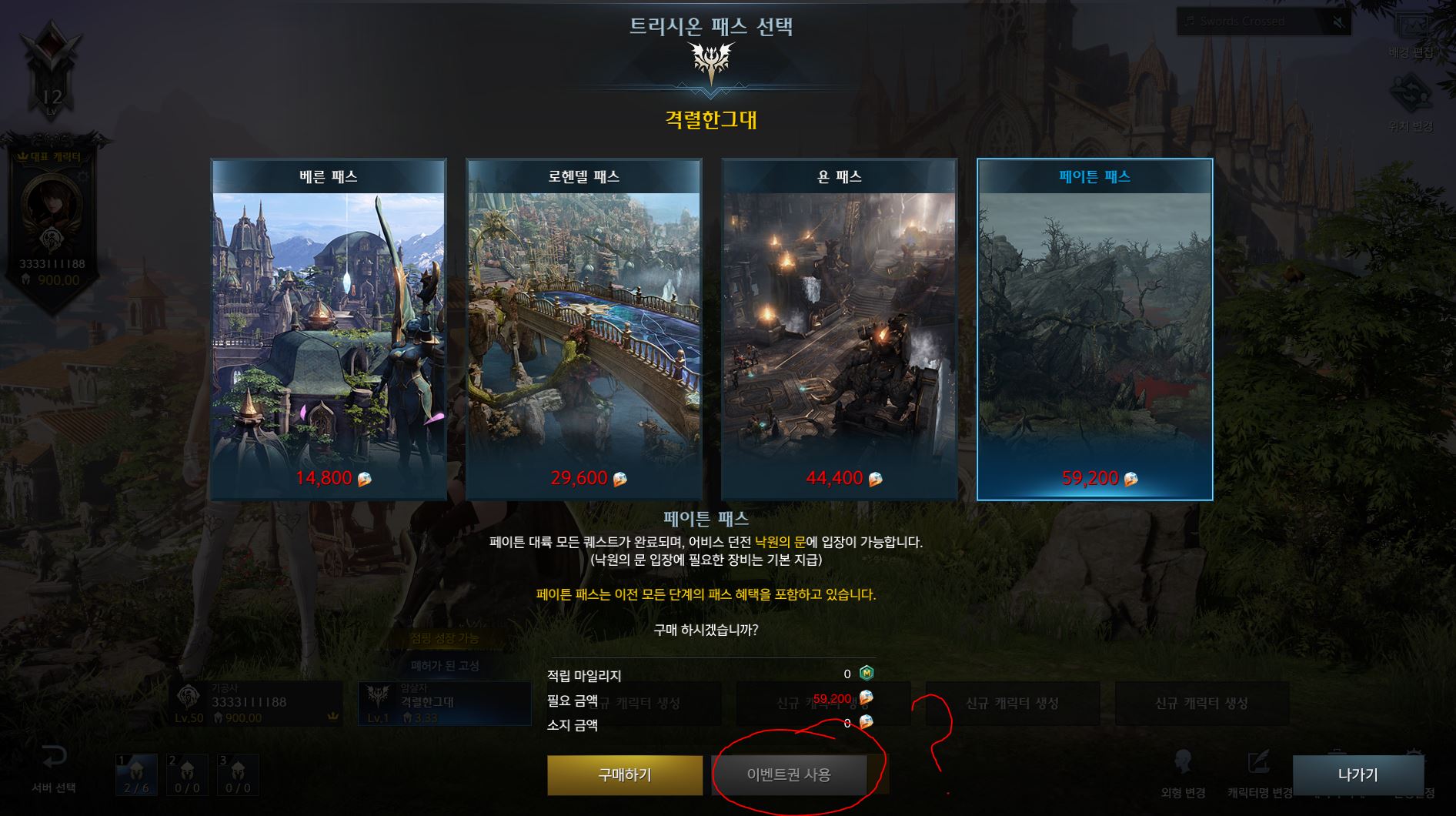 카단 서버에 한개, 아만 서버에 한개 총 두개의 케릭터가 생성되어 있습니다.