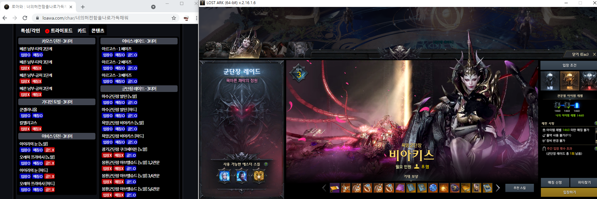 며칠전에 비아키스 하드 하다가 2관문 도중에 몇줄 안남기고 니나브 쏘자마자 팅겨서 파티 깨지고..