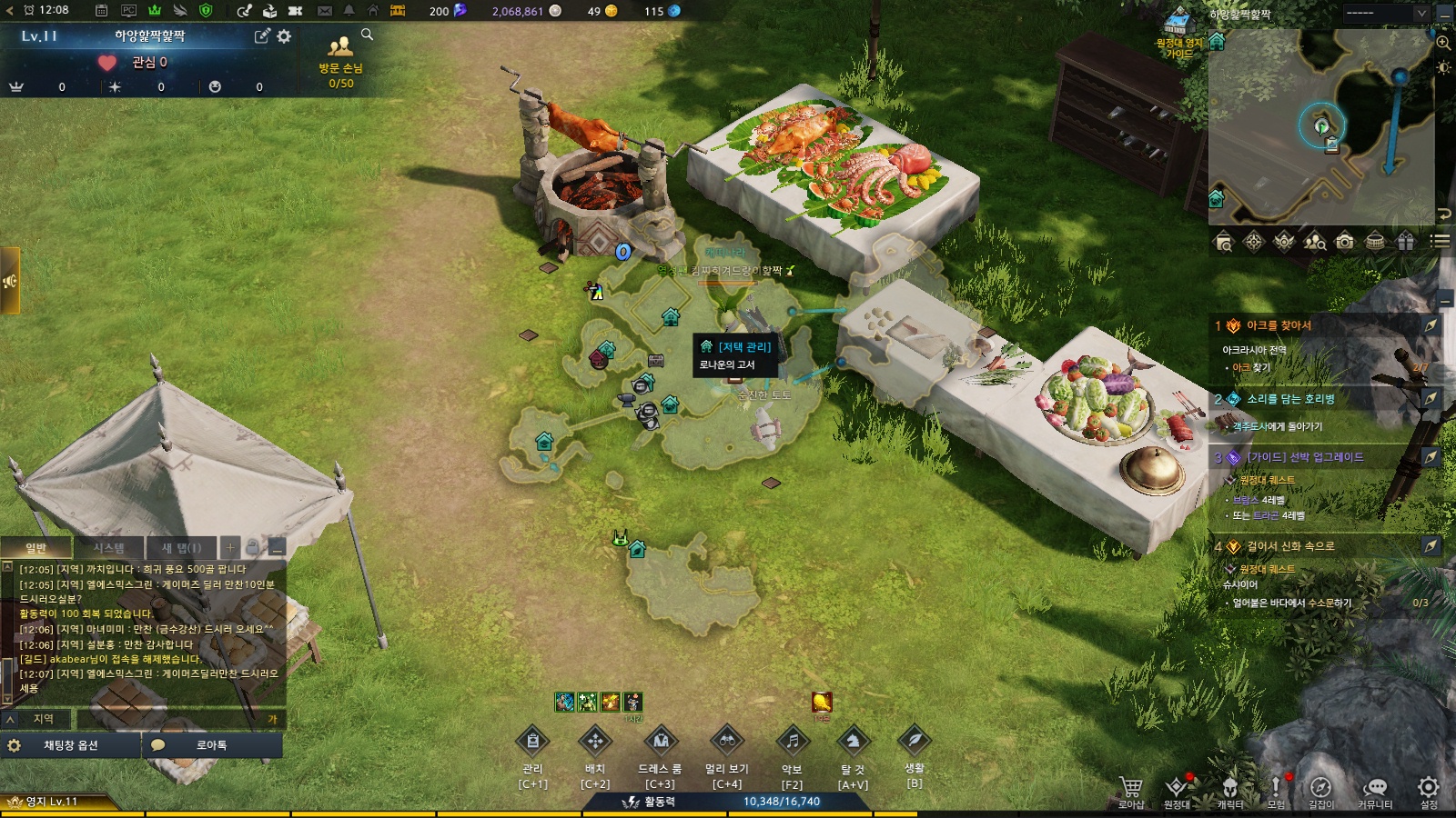 영지11렙 셰프 없고.. 퀘스트도없는데..