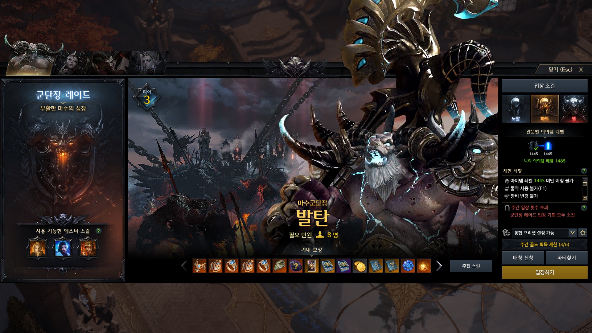 발탄 하드 2관문 왜 입장이 안되는걸까요?