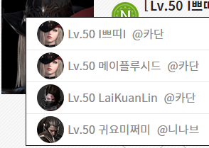대표캐릭터로 설정한 닉네임 Ctrl+F로 넣고 검색해봤는데