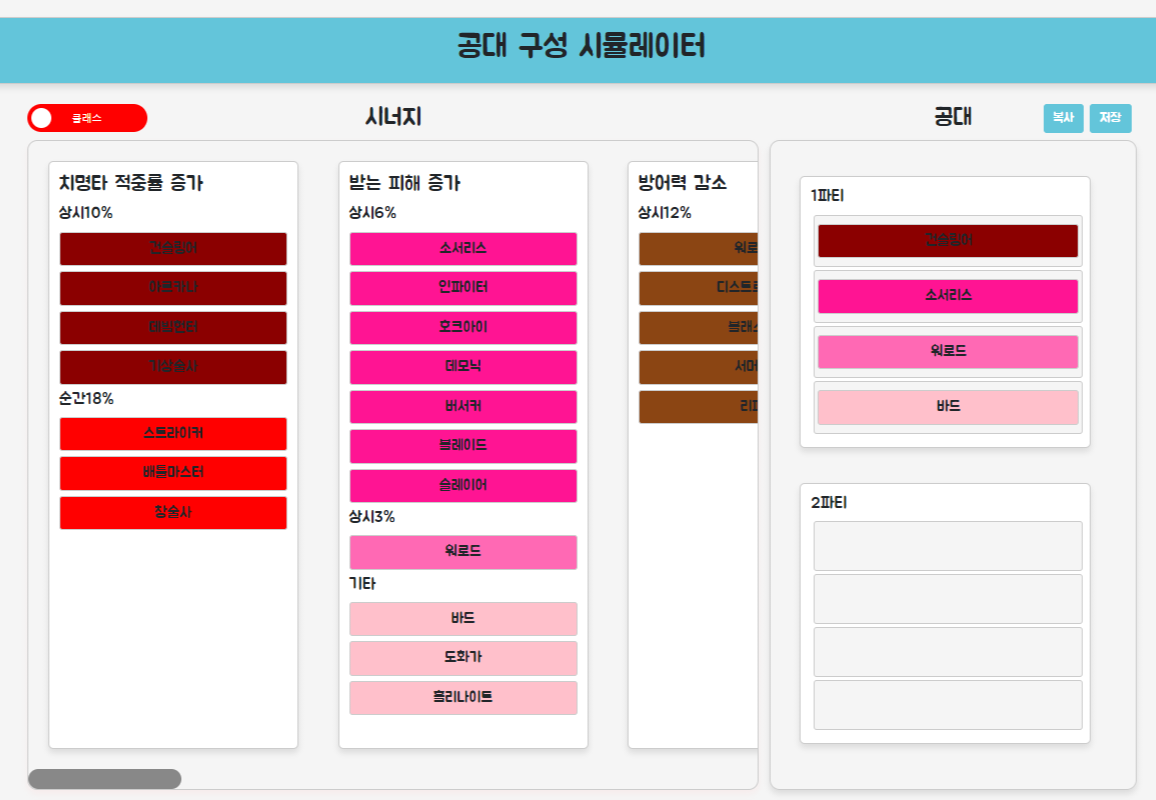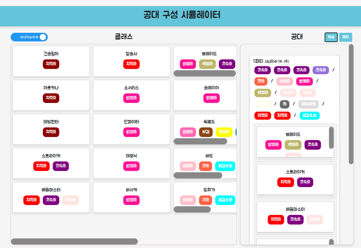 2.클래스를 기반으로, 원하는 직업들의 시너지 확인하며 공격대 구성하기