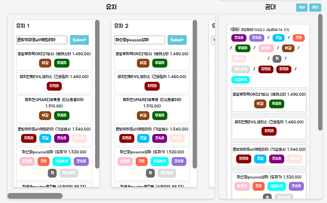 3. 유저들의 캐릭터들을 기반으로, 원하는 직업과 시너지를 가진 공격대 구성하기