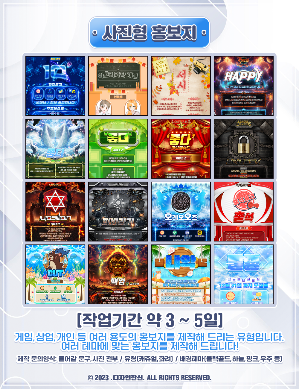 시선을 끄는 "최고의 퀄리티/가성비" 디자인을 만들어 드립니다! 구경해보세요!