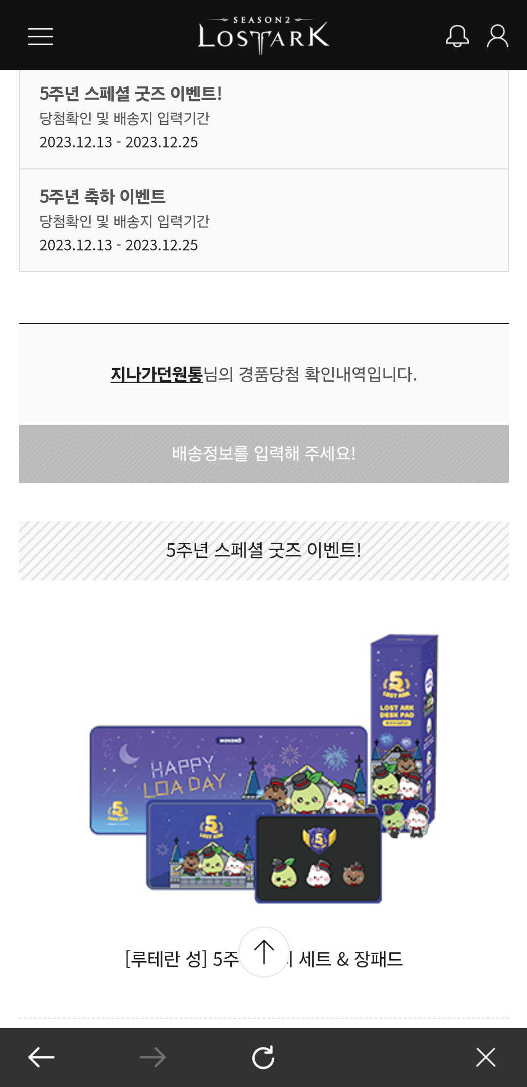 행복하다 5주년 당첨