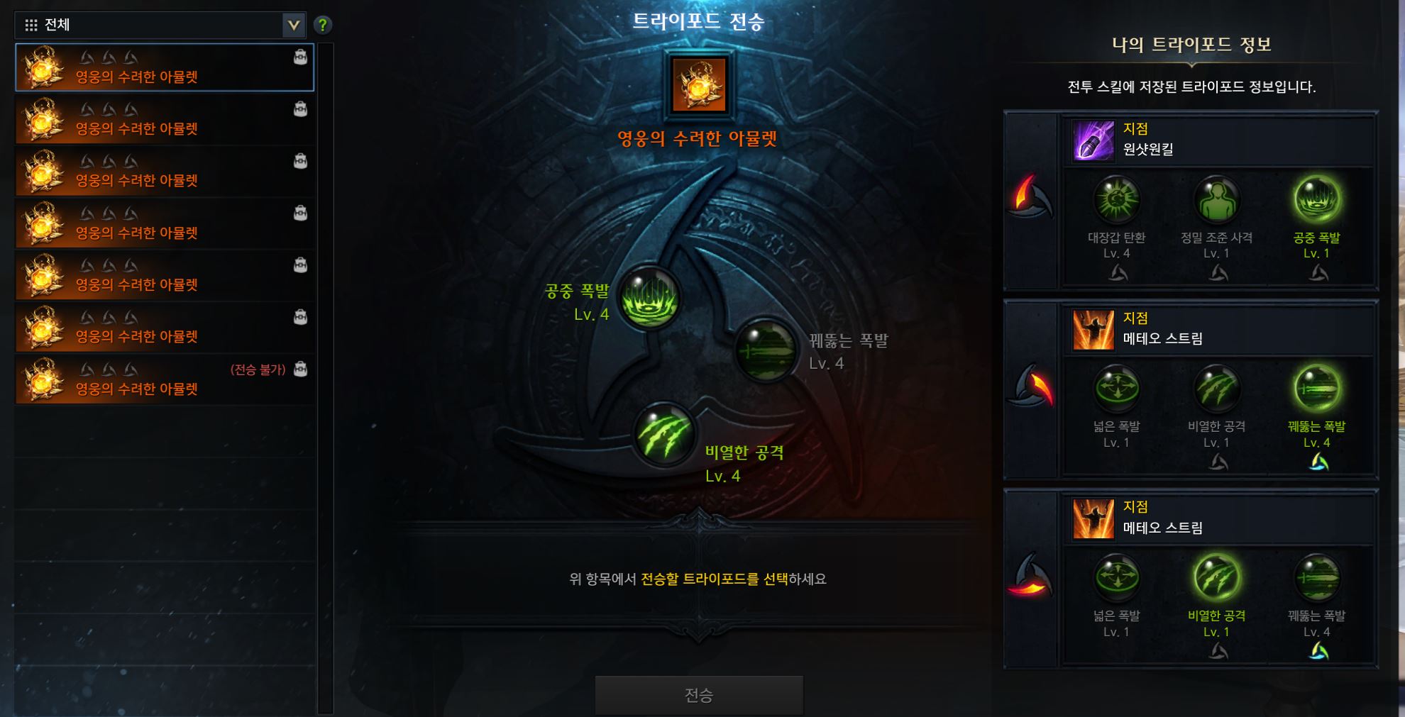 여러개 지정해서 한번에 전승하는 기능 있었음 좋겠음