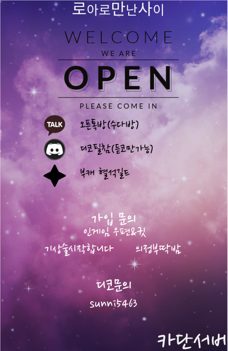카단 신생 로아로만난사이에서 복귀 혹은 신규 혹은 신입 길드원분들을 모집합니다