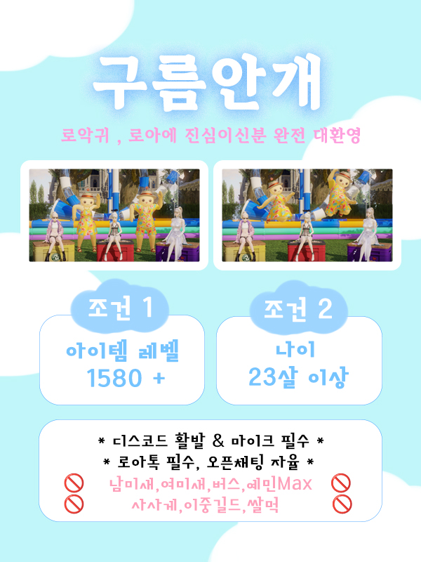 🤍 디스코드 활동 활발하신분(마이크필수), 로아톡 필수, 오픈톡 참여 자유