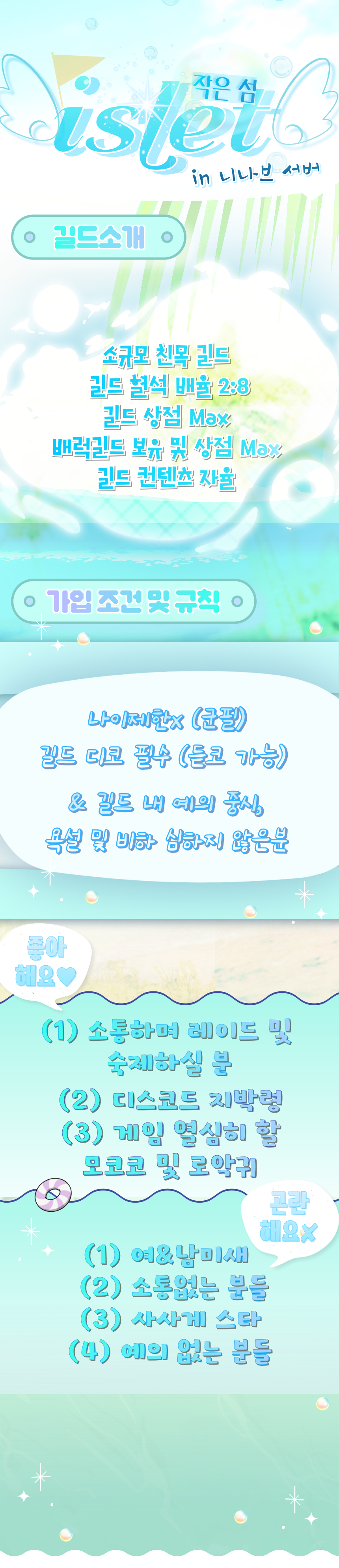 니나브 lv.19 소수친목길드 [islet] 작은 섬에 갇히실 길드원 구함♥