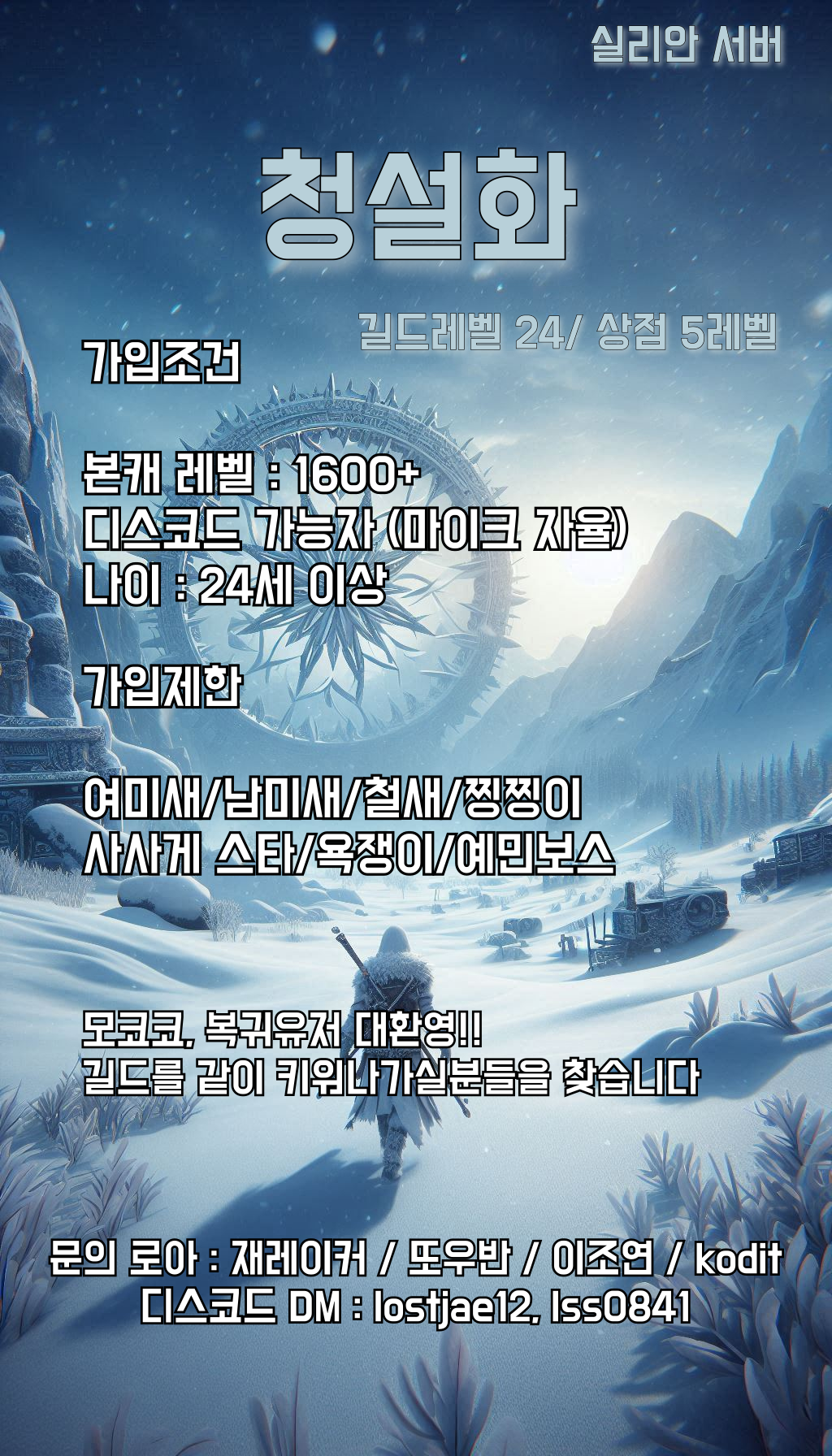 실리안 [실리안] Lv.24 신입 길드 ❄청설화❄에서 길드를 함께 키워나갈 신입 길드원을 모집합니다