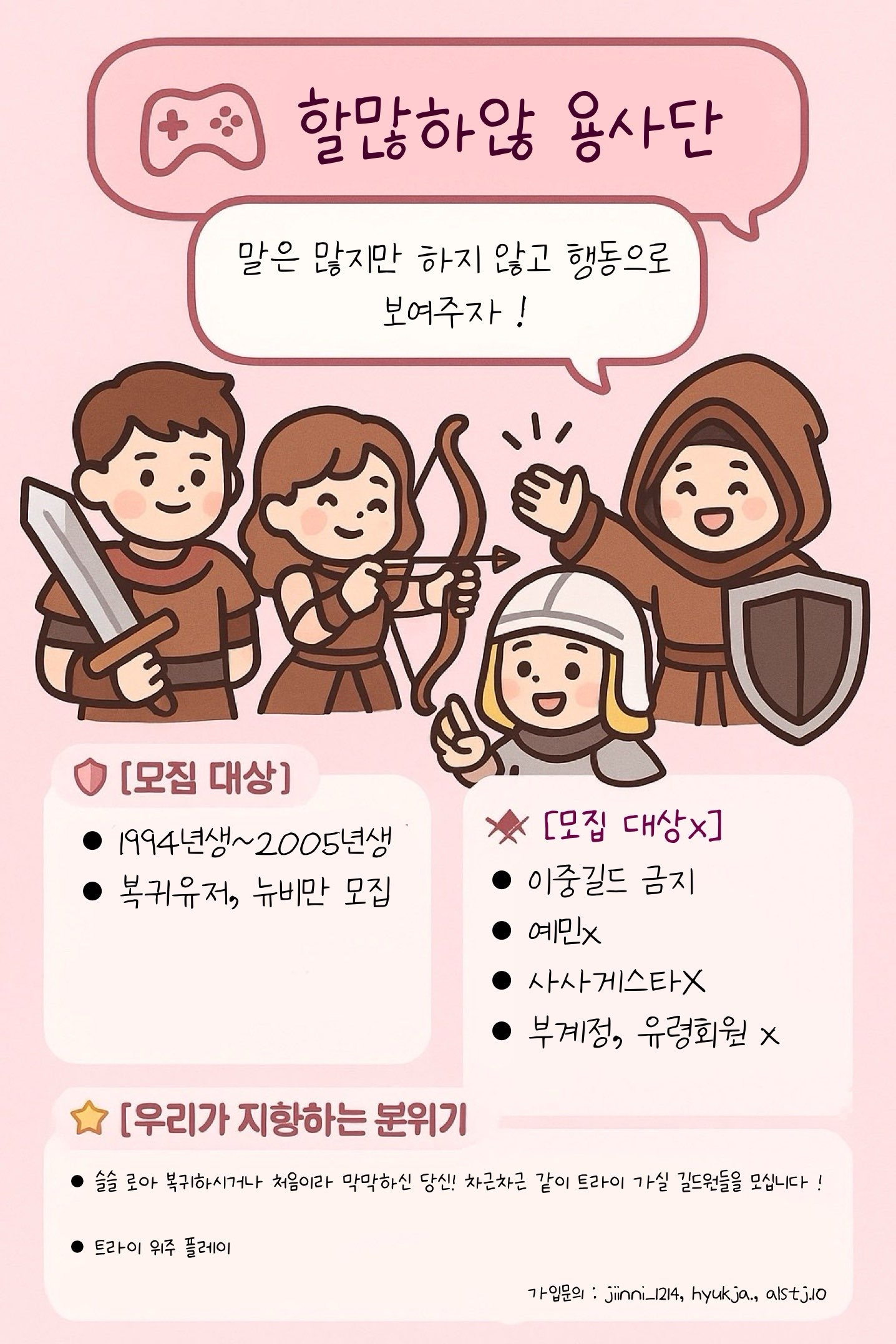 니나브 [할많하않용사단] 새로운 신입 길드원을 모집합니다!!