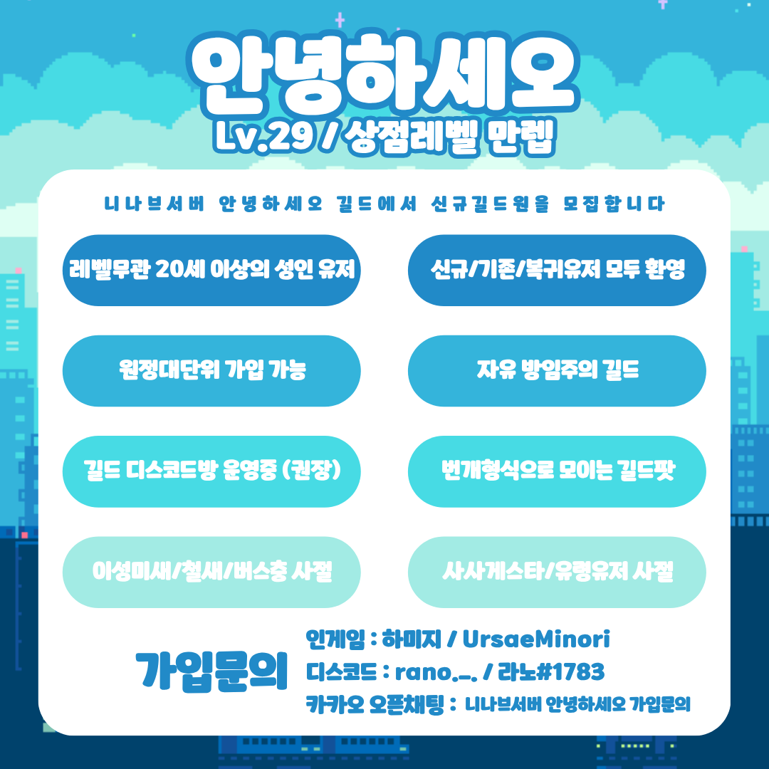 니나브 [안녕하세오] 길드원 모집합니다!