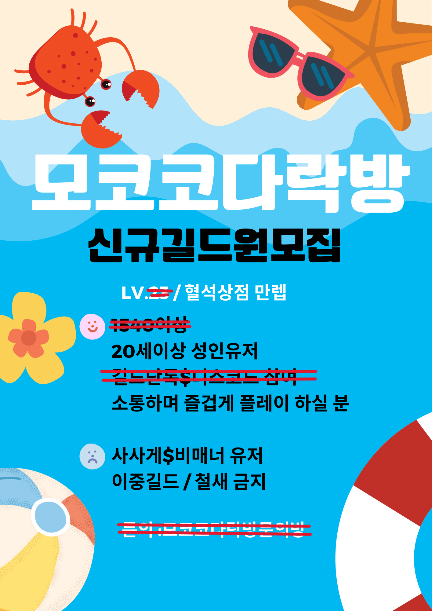 일반적인 매너만 지켜주시고 자유롭게 게임즐겨주시면 됩니다.